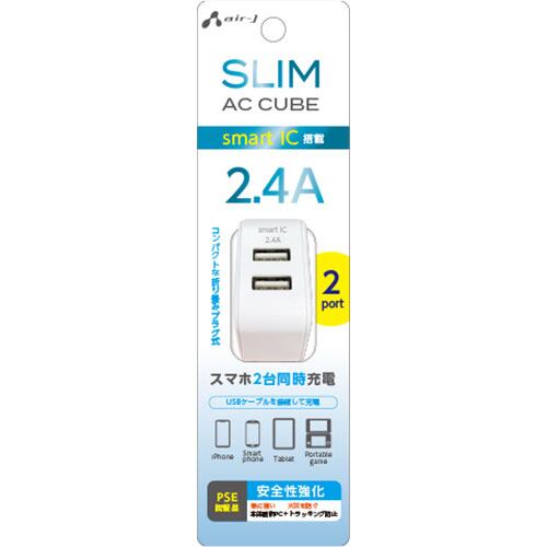 【3個セット】 エアージェイ スリムキューブAC充電器 USBポートX2 WH AKJ-S
