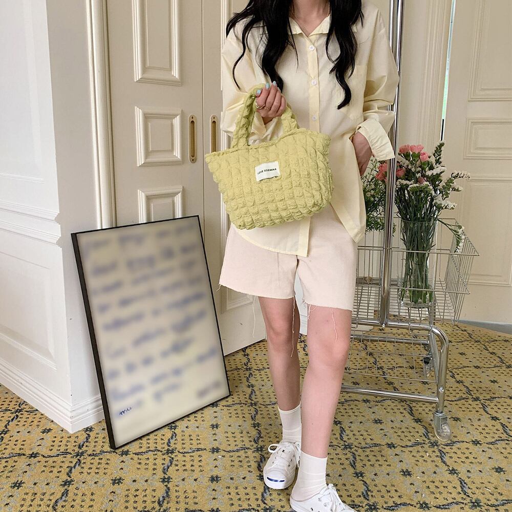 レディース 可愛い 英字ロゴ キルティング ハンドバッグ ぽこぽこ 韓国風 手提げかばん おしゃれ サブバッグ お出かけ