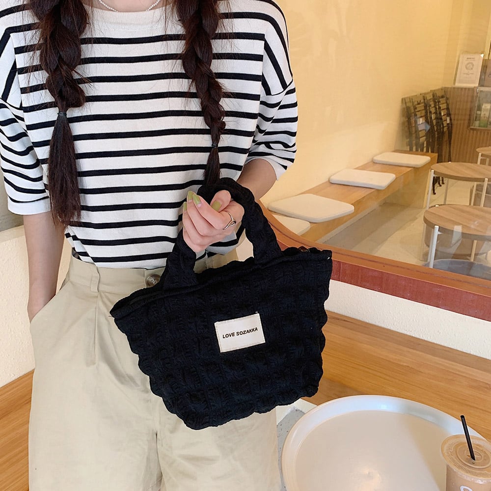ポコポコとした表面感が可愛らしいポップコーン生地のミニトートバッグ