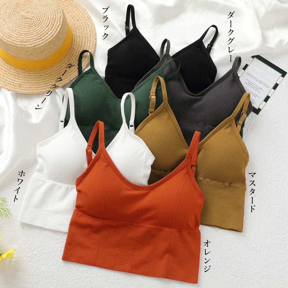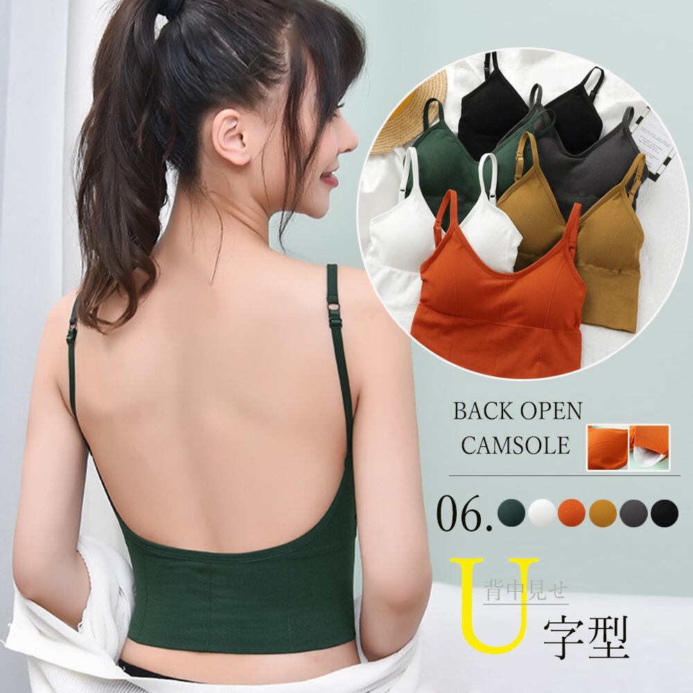 リブキャミソール レディース Uオープンバック インナー カップ付き