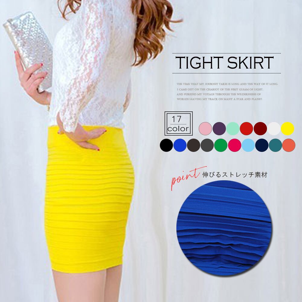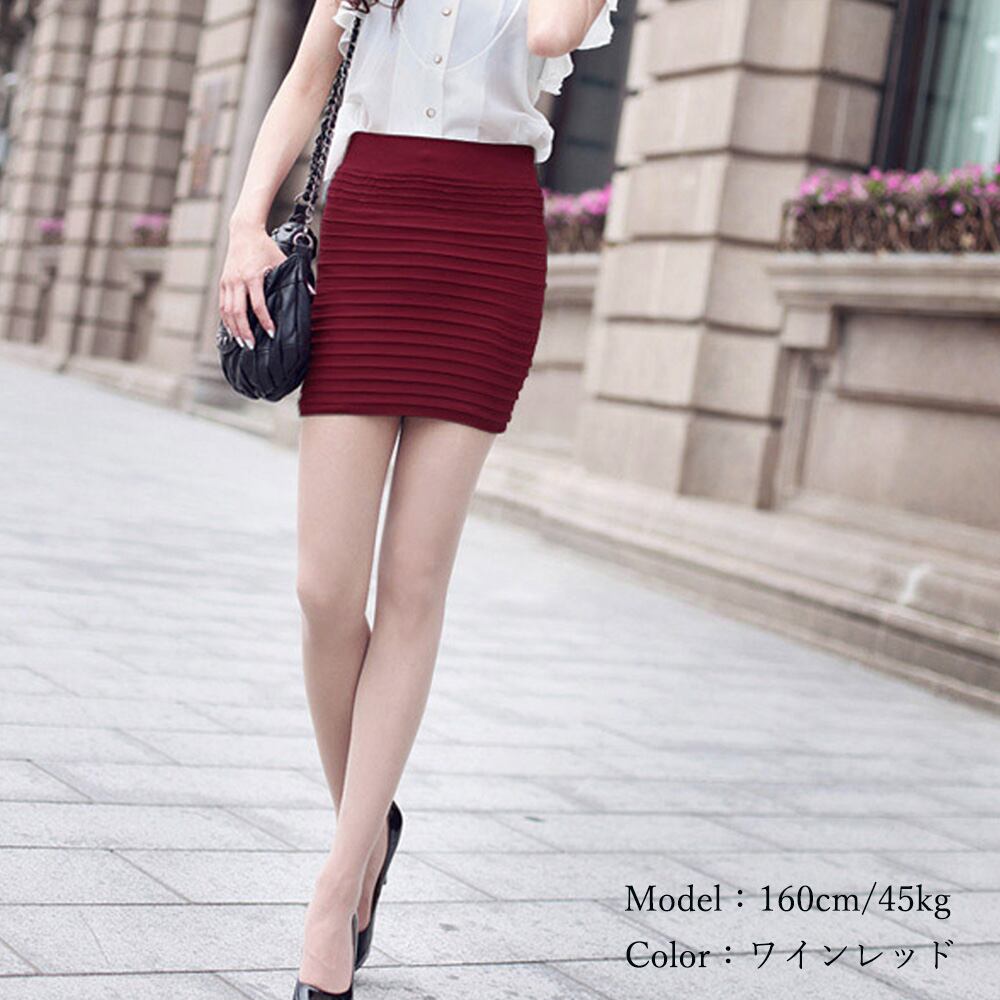 豊富なカラーバリエーションを誇る横プリーツ仕様のミニ丈タイトスカート