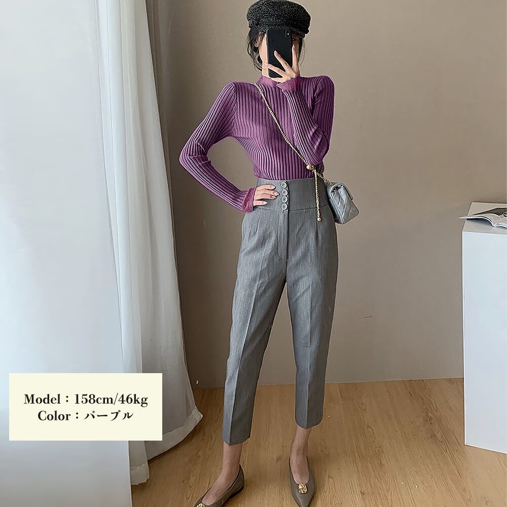 ドッキング リブニット プチハイネック レイヤード おしゃれ ニットソー 切り替え きれいめ 韓国ファッション