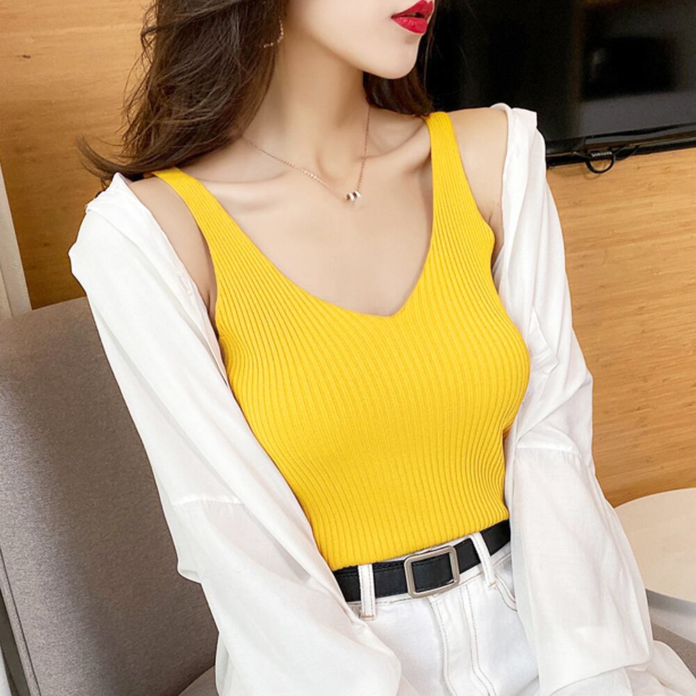 タンクトップ Vネック サマーニット ノースリーブ ニットキャミソール