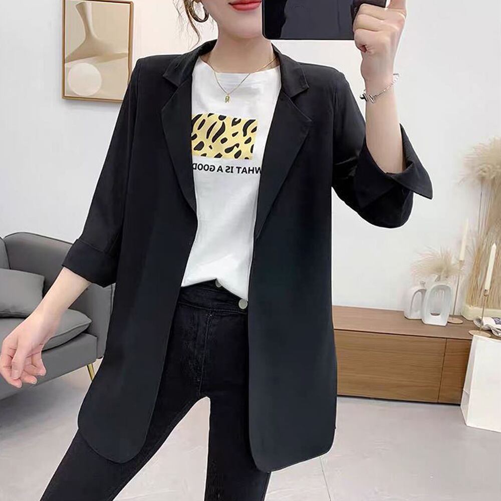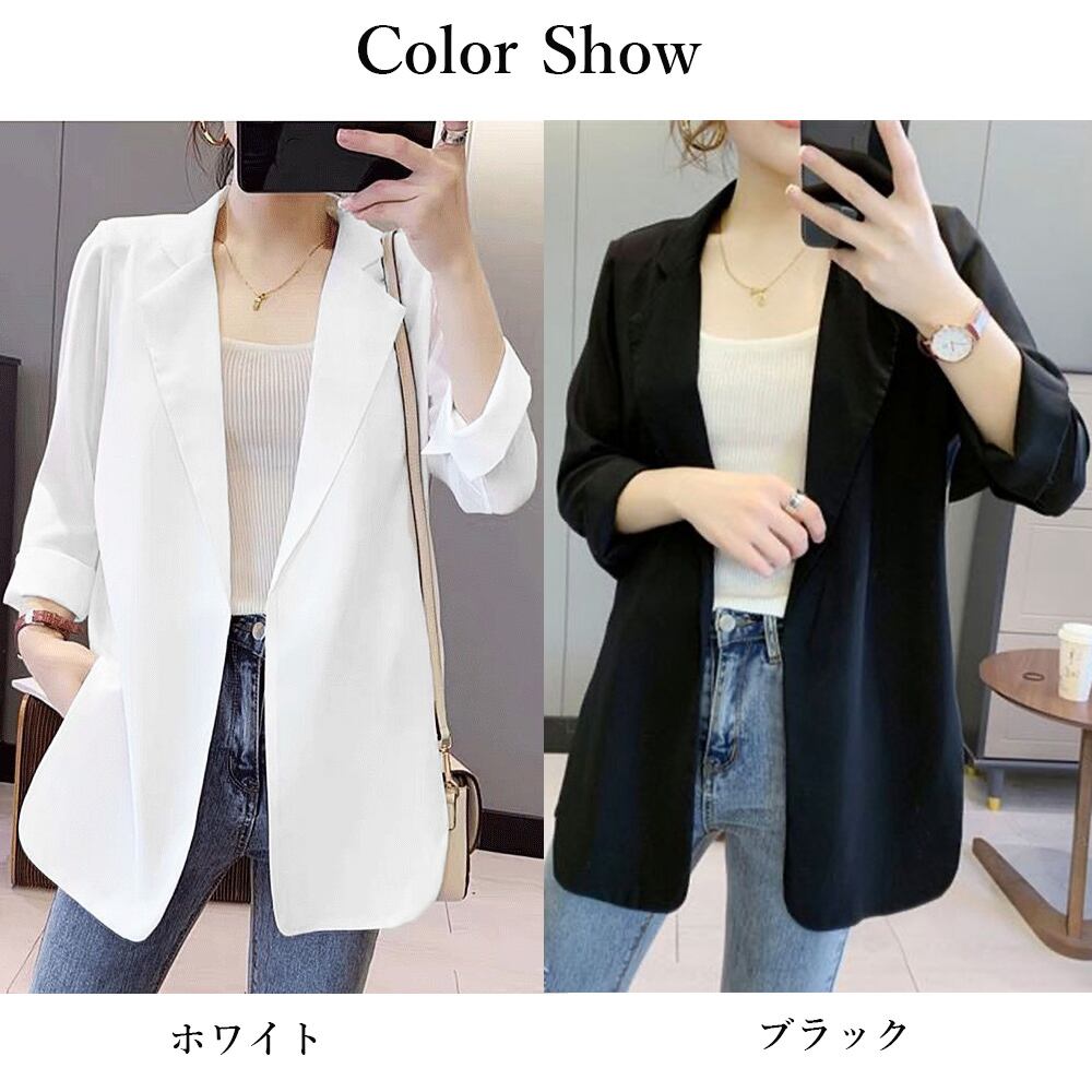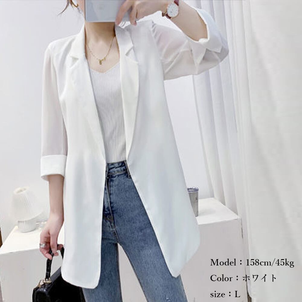 薄手 テーラージャケット 7分袖 スリット カーディガン きれいめ トップス 無地 通勤 オフィス 大人スーツジャケット