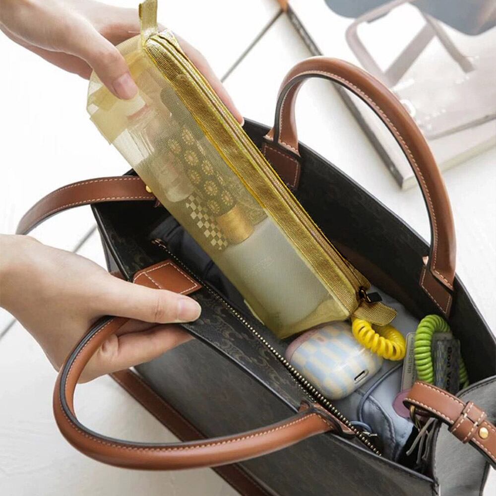 4つのメッシュポーチが一つにコンパクトにまとまる便利な折り畳み式ポーチです。