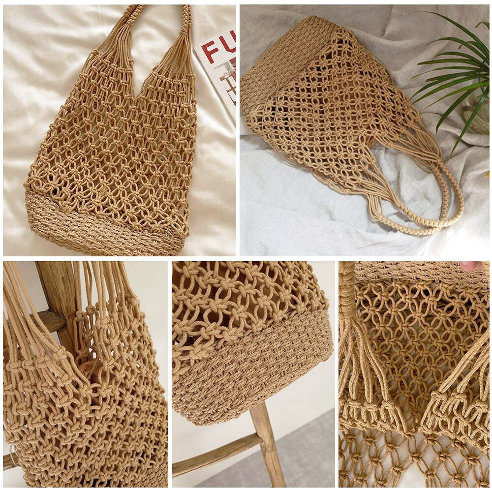 レディース 大人可愛い ストローバッグ リゾート レジャー ペーパーバッグ カジュアルレトロ風 フィッシュネットバッグ海