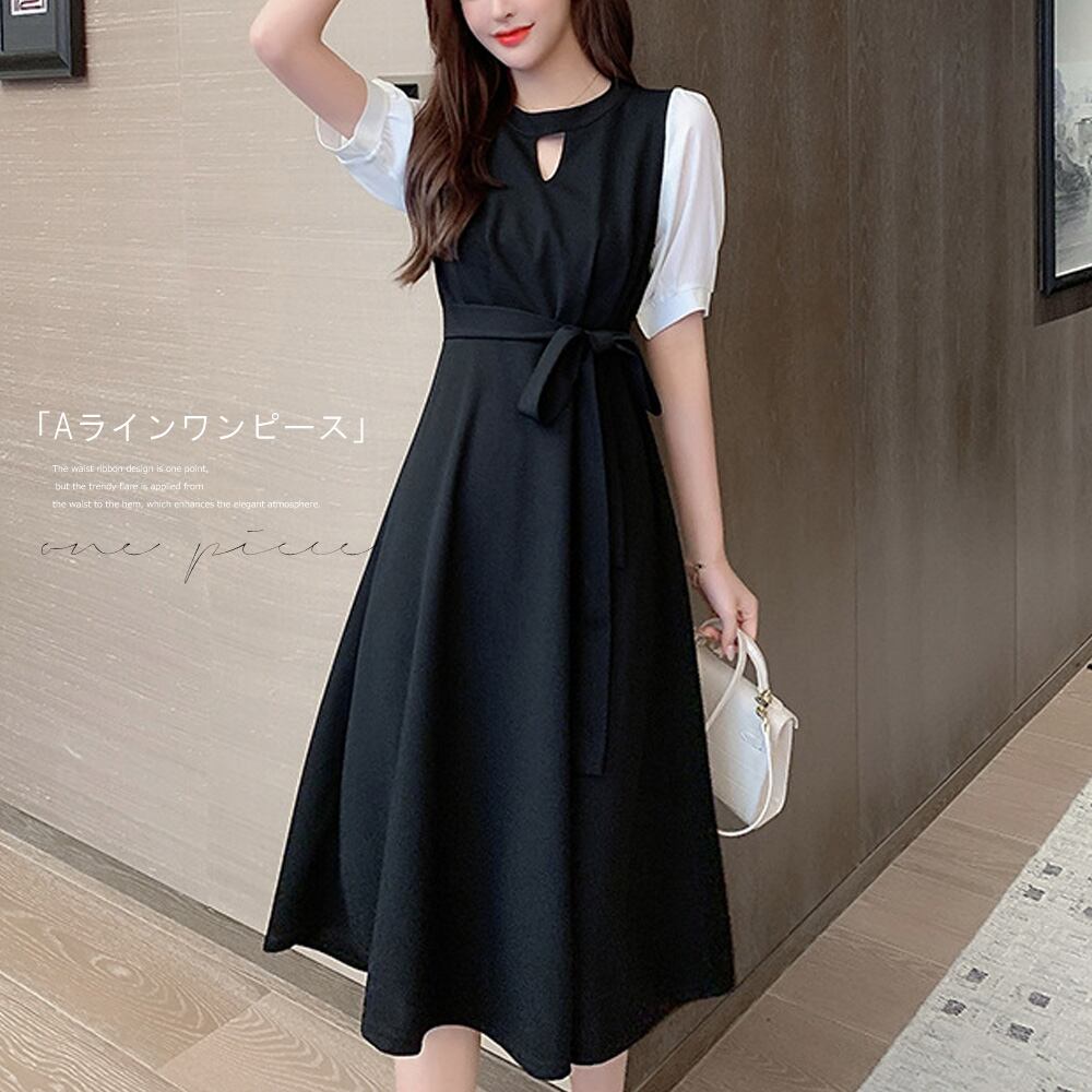 結婚式ドレス 上品 夏ワンピ Aライン フォーマル通勤OL