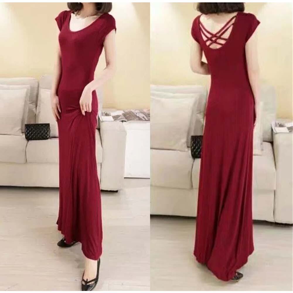 さらさら生地が肌に心地良さを与えてくれる半袖ロングワンピース