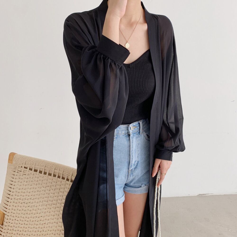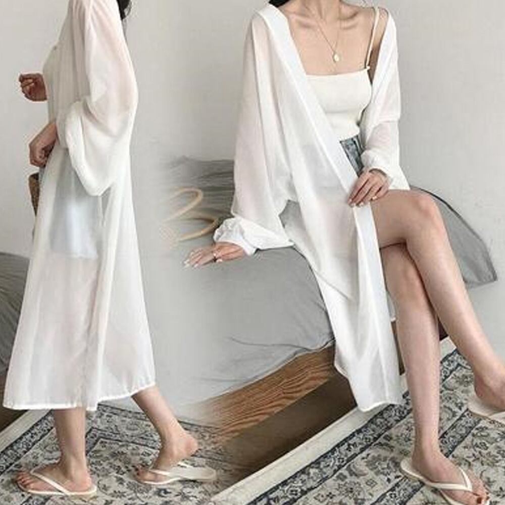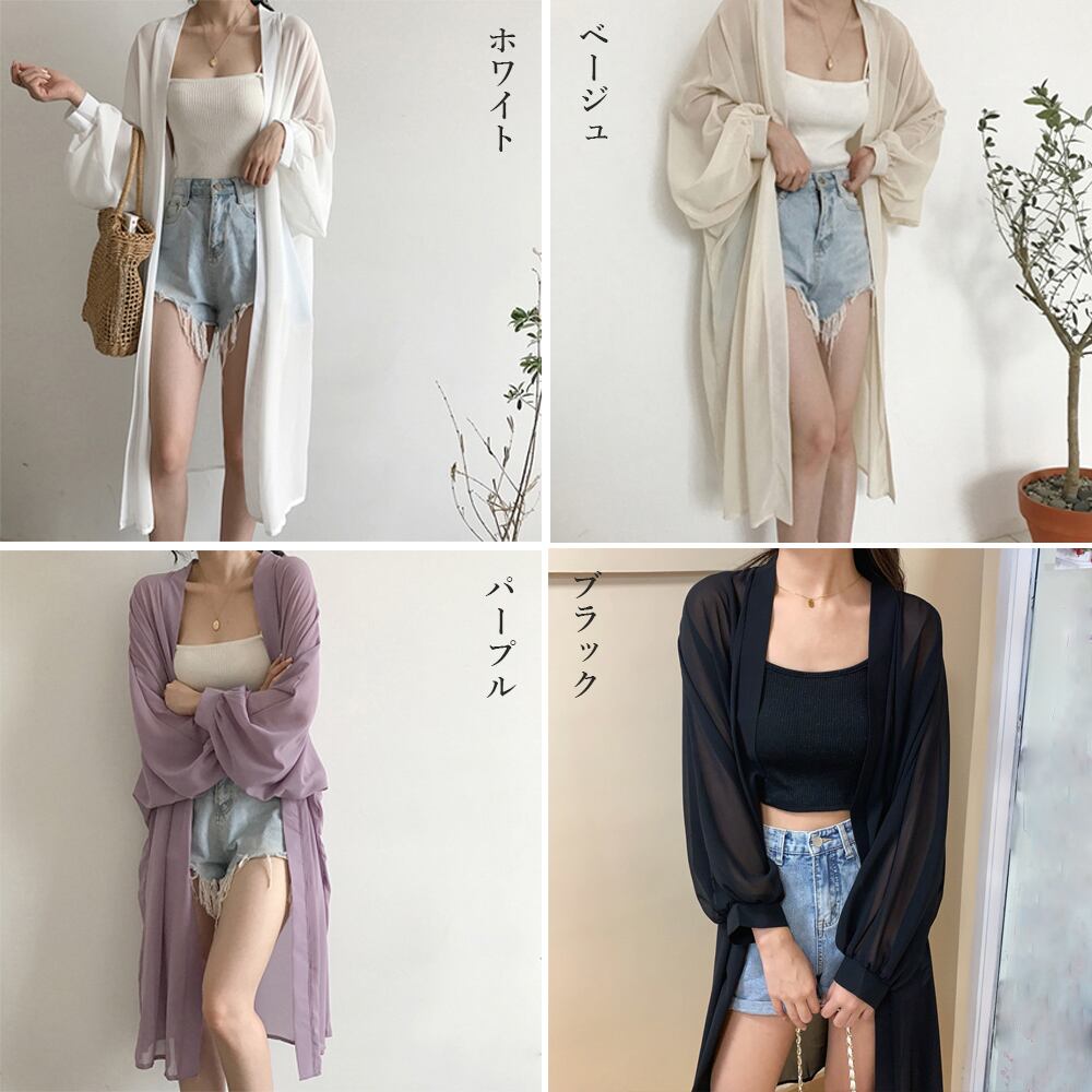 レディース シフォン ゆったり ロング丈シャツ UV対策 薄手 アウター 韓国風 無地 ロングカーディガン 冷房対策