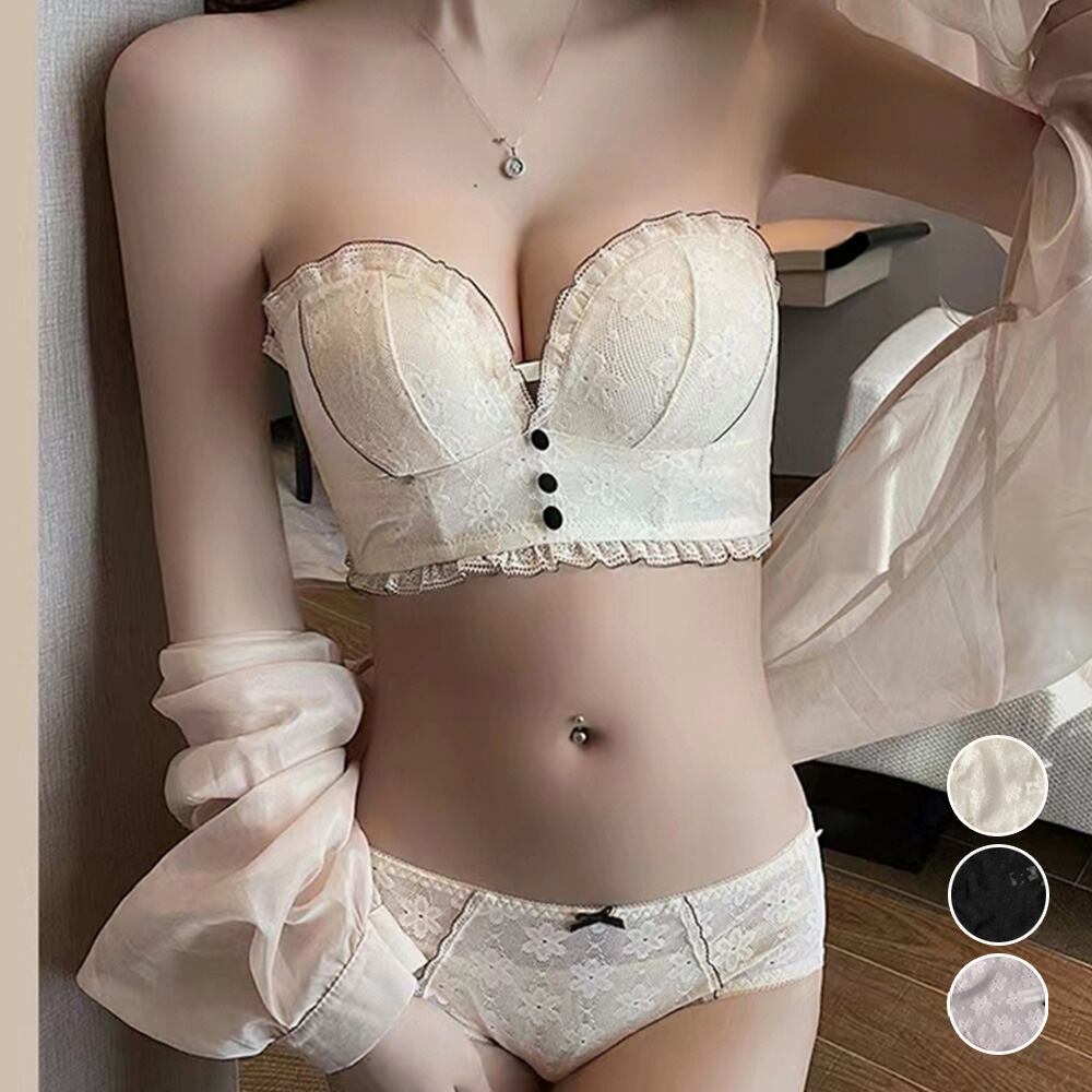 たっぷりレースが可愛らしい、盛れるブラ&ショーツの2点セット
