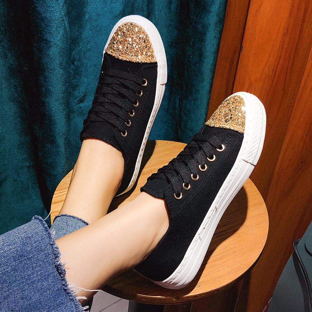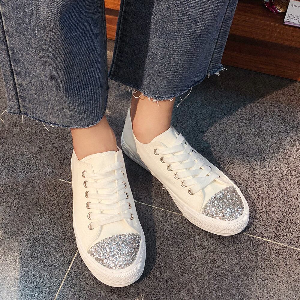 スニーカー レディースシューズ キャンバス ローカット 靴 キラキラ フラットシューズ ぺたんこ