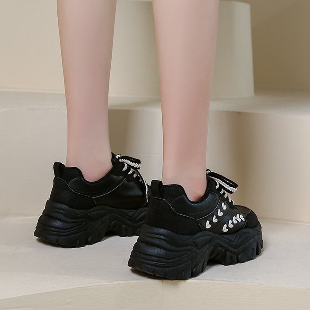 韓国風 ボリューム厚底スニーカー 黒カジュアル スポーティー 美脚 疲れにくい プラットフォーム 歩きやすい靴 春夏秋冬
