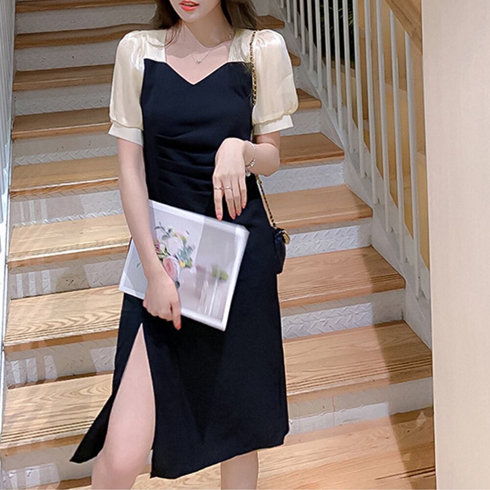タイトワンピース黒 スリットワンピース 結婚式ドレス韓国風