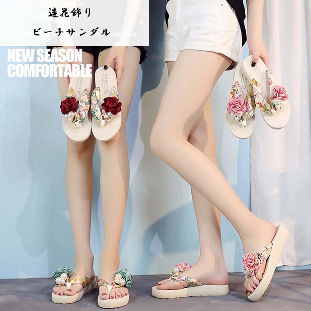ビーチサンダル 造花飾り トングサンダル