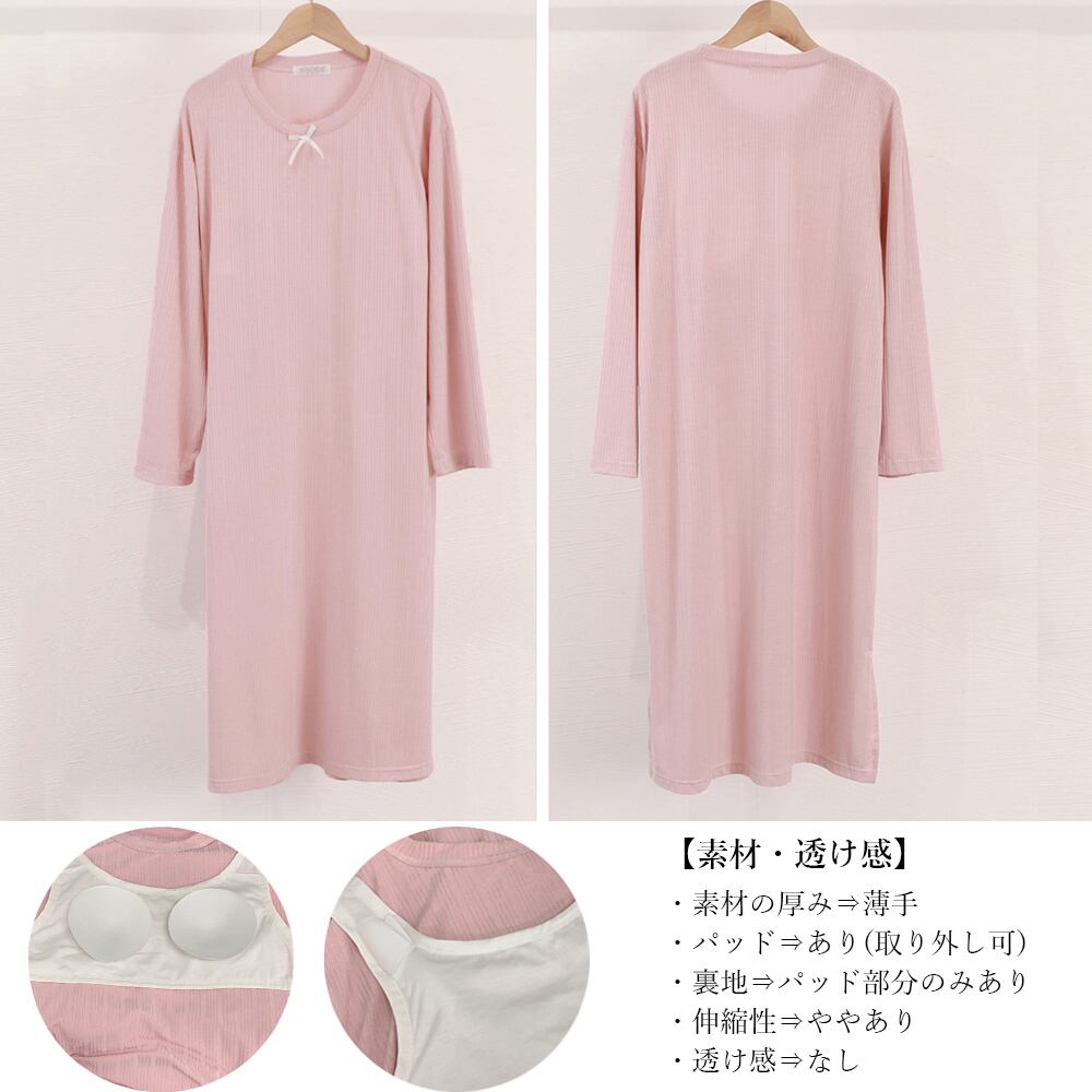 レディース ゆったり 薄手長袖 インナーワンピース体型カバー ルームウエア お洒落部屋着 春秋夏 寝間着ブラ付きパジャマ