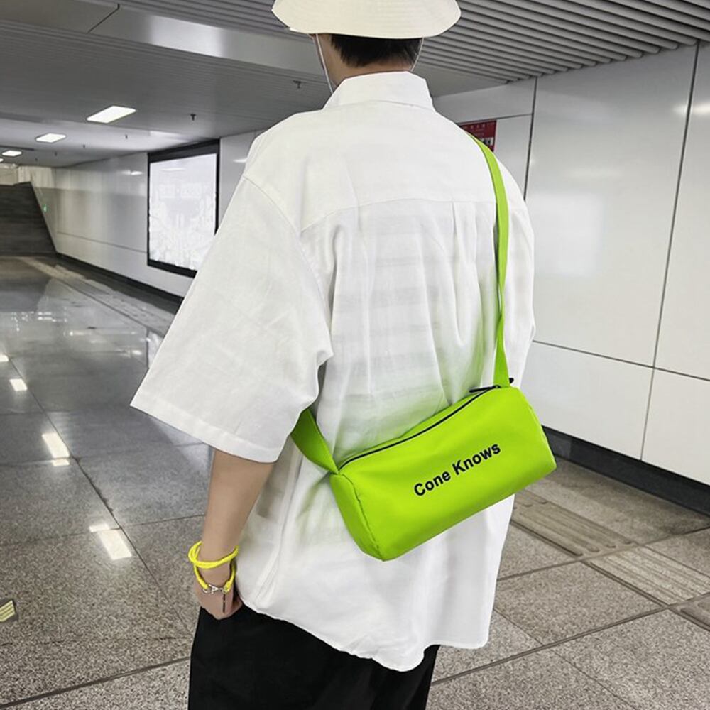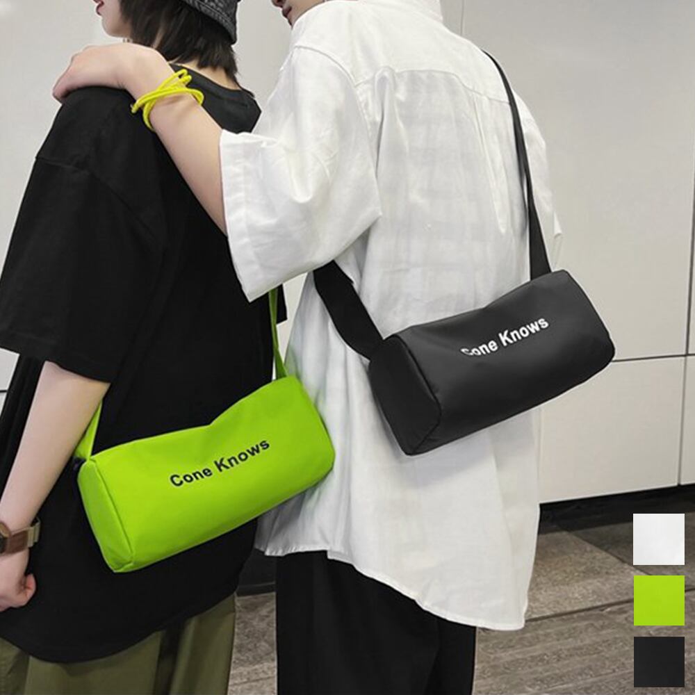 レディース 斜めがけバッグ メンズ コンパクトボディバッグ スポーツ ユニセックスメッセンジャーバッグ ロゴ円筒型カバン