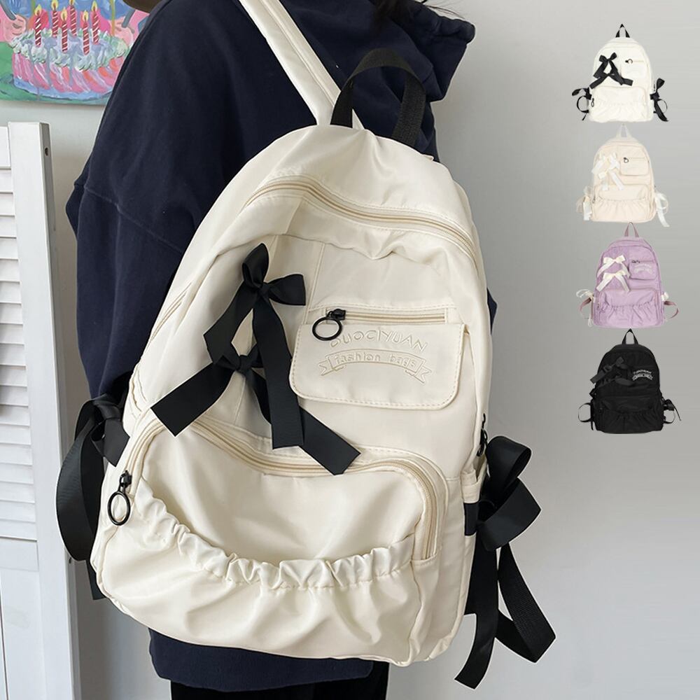 リボン付き バックパック 肩掛けバッグ 内ポケット付き 可愛い おしゃれ お出かけ 学生カバン アウトドア
