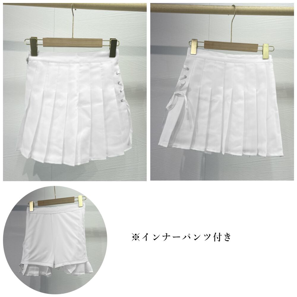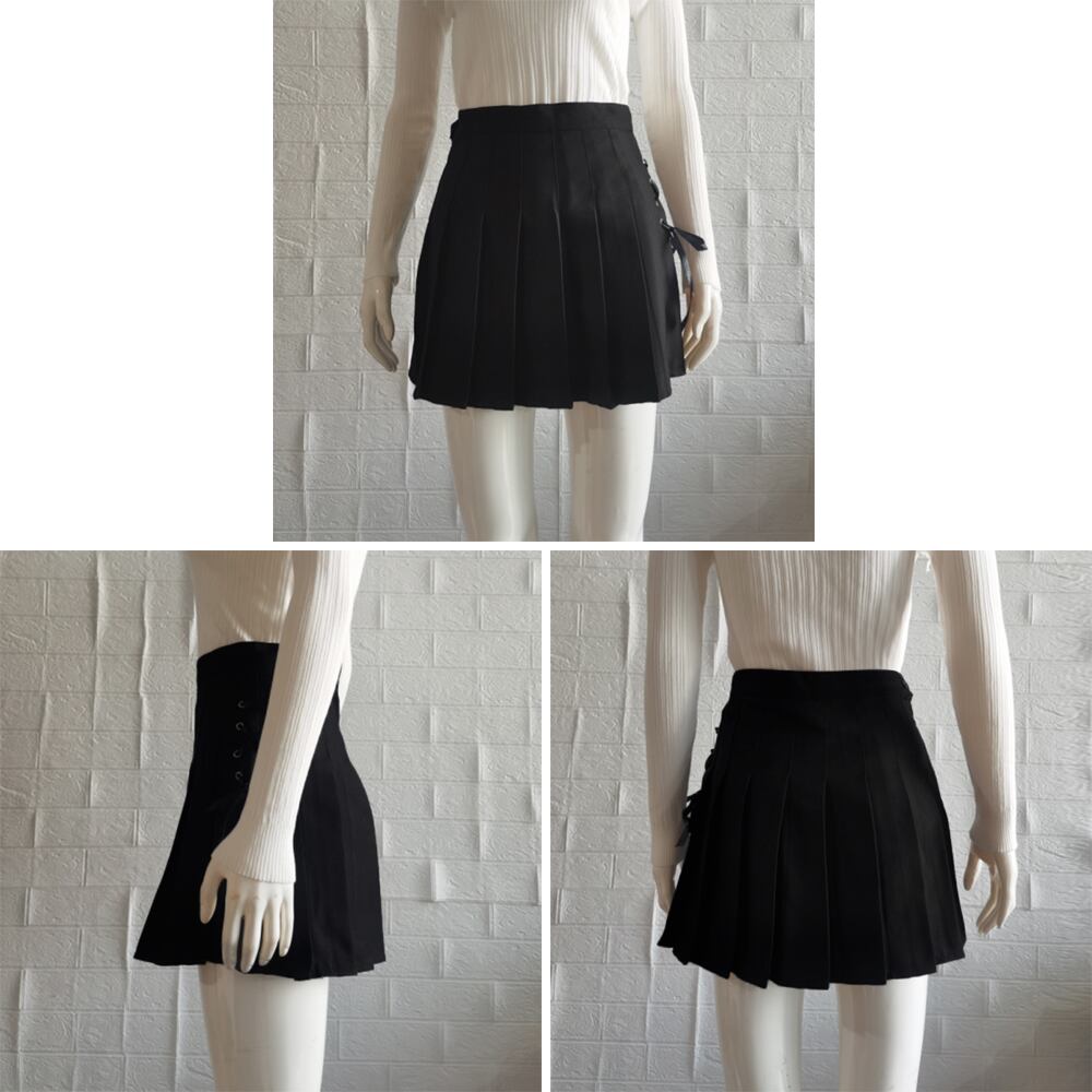 サイドのレースアップが可愛くオシャレなミニプリーツスカート