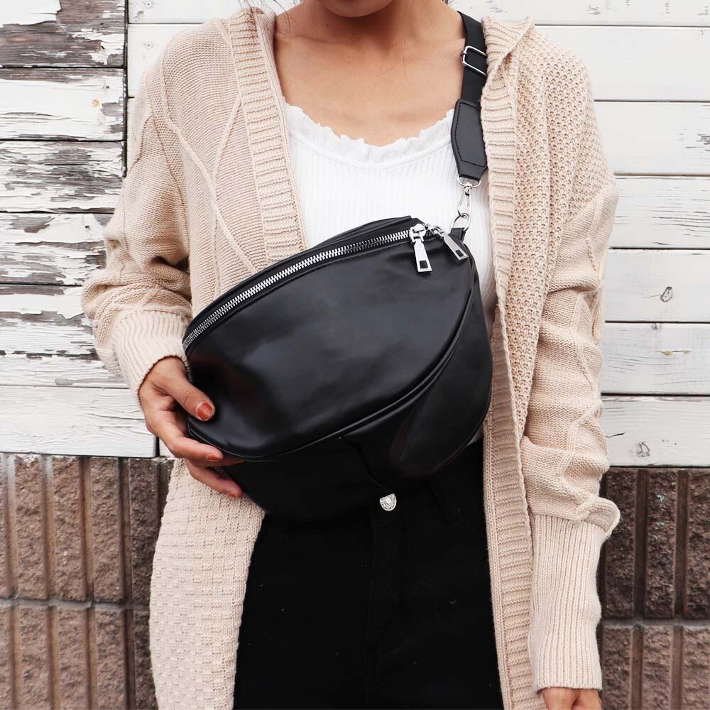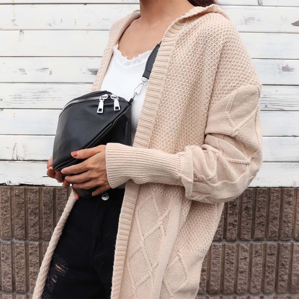 大きく開く開閉口なので物を取り出しやすく、収納しやすいレザーボディバッグ