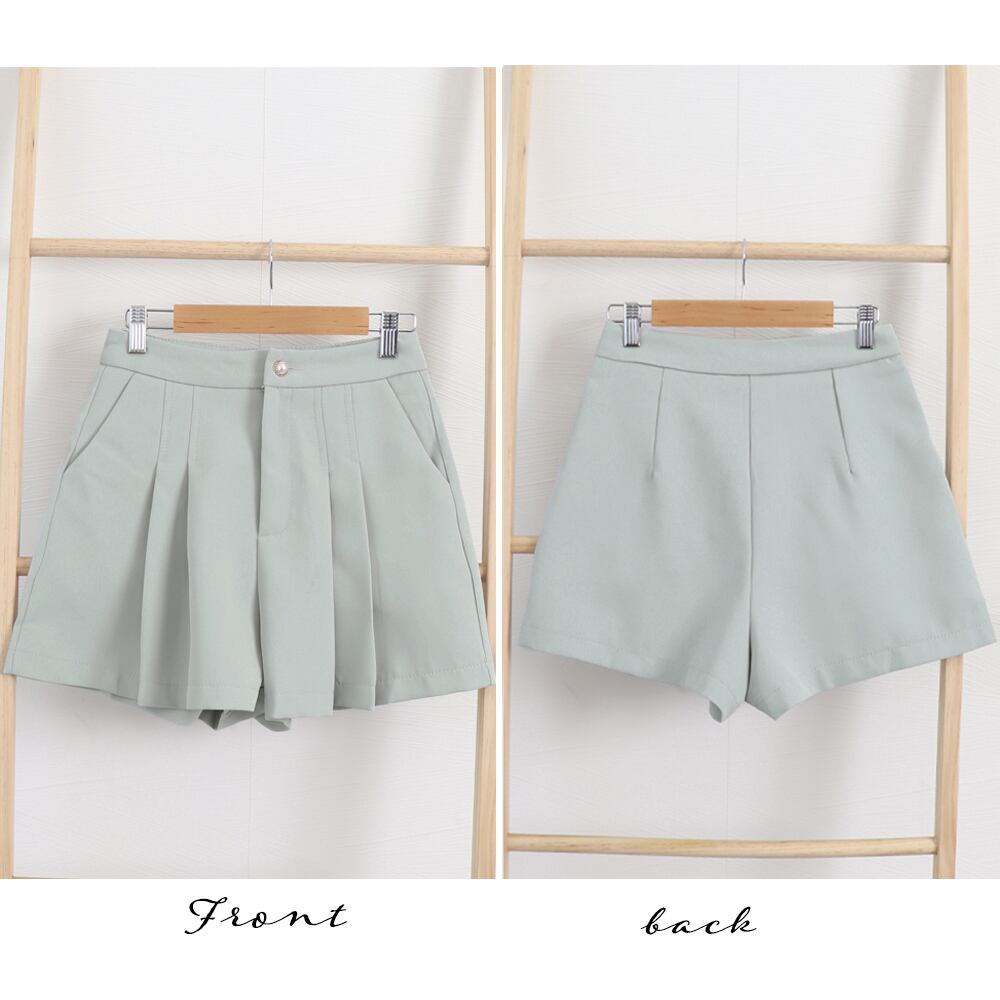 無地 ショートパンツ 夏 ミニ丈パンツ Aライン ハイウエスト きれいめ 着やせ 美脚 ボトムス タック 短パンブラック