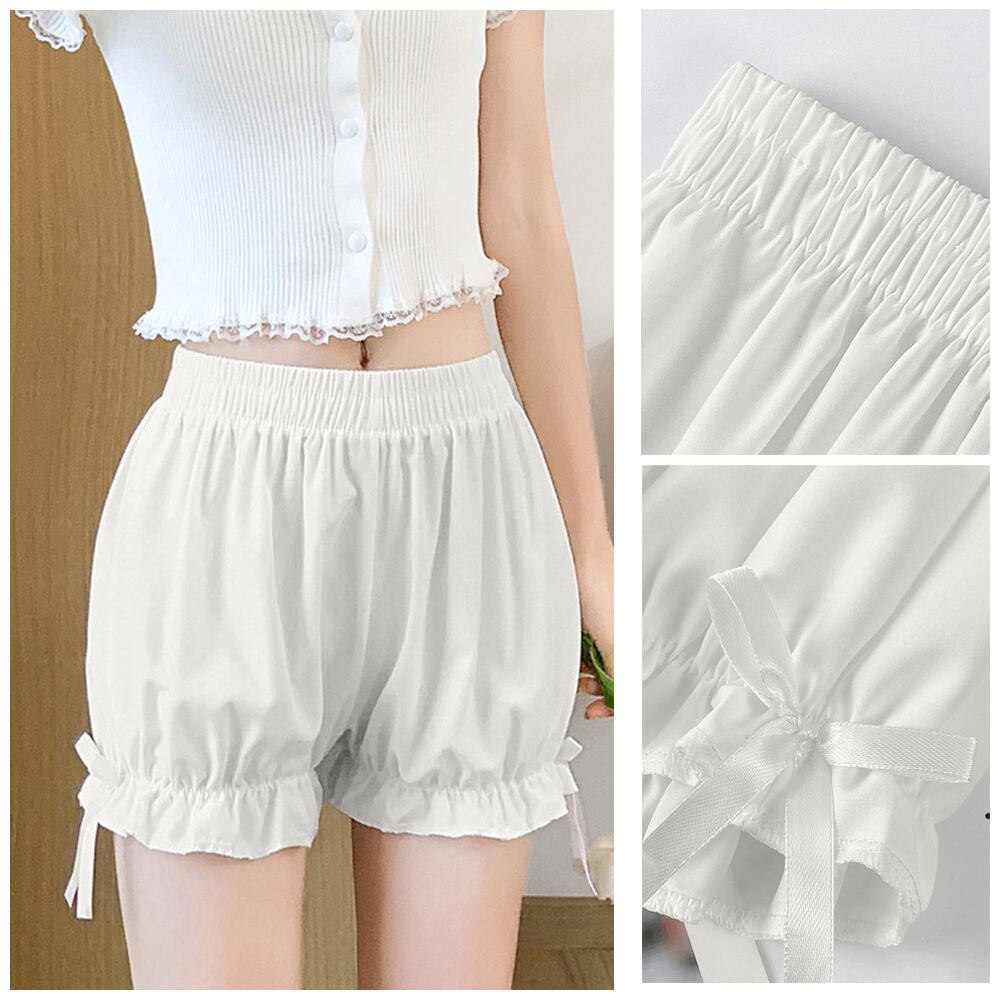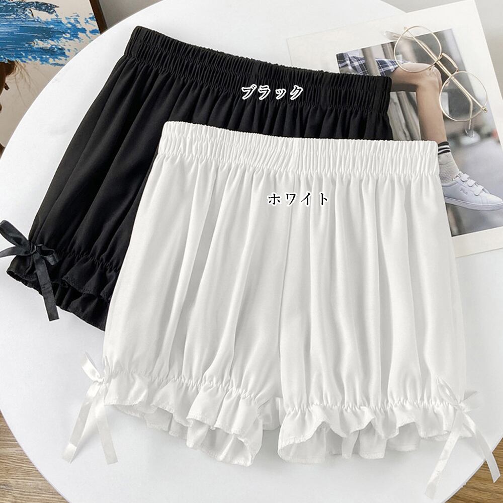 インナーショーツ 透け防止 タップパンツ リボン付き部屋着 可愛い肌着 ウエストゴム ナイトウエア チラ見え防止見せパン