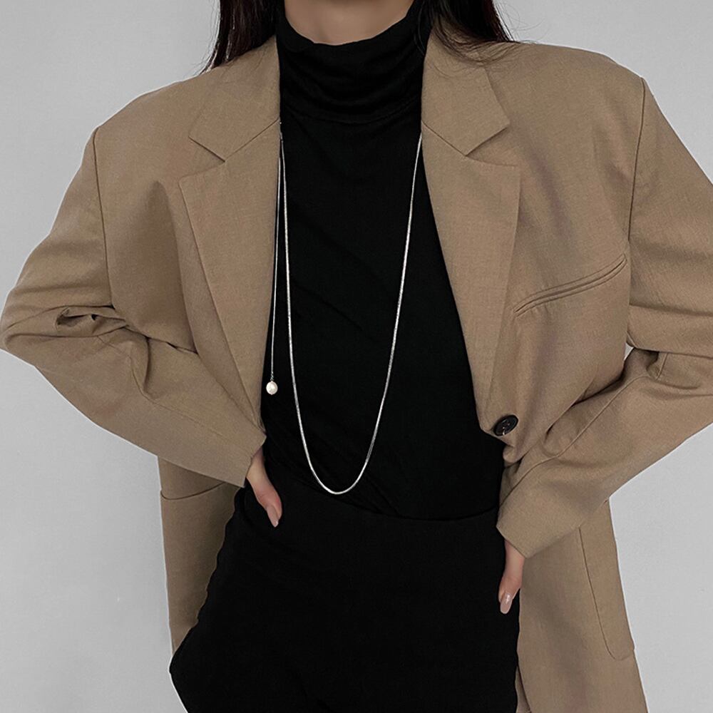 フェイクパールが一粒あしらわれたシンプルデザインのロングチェーンネックレス