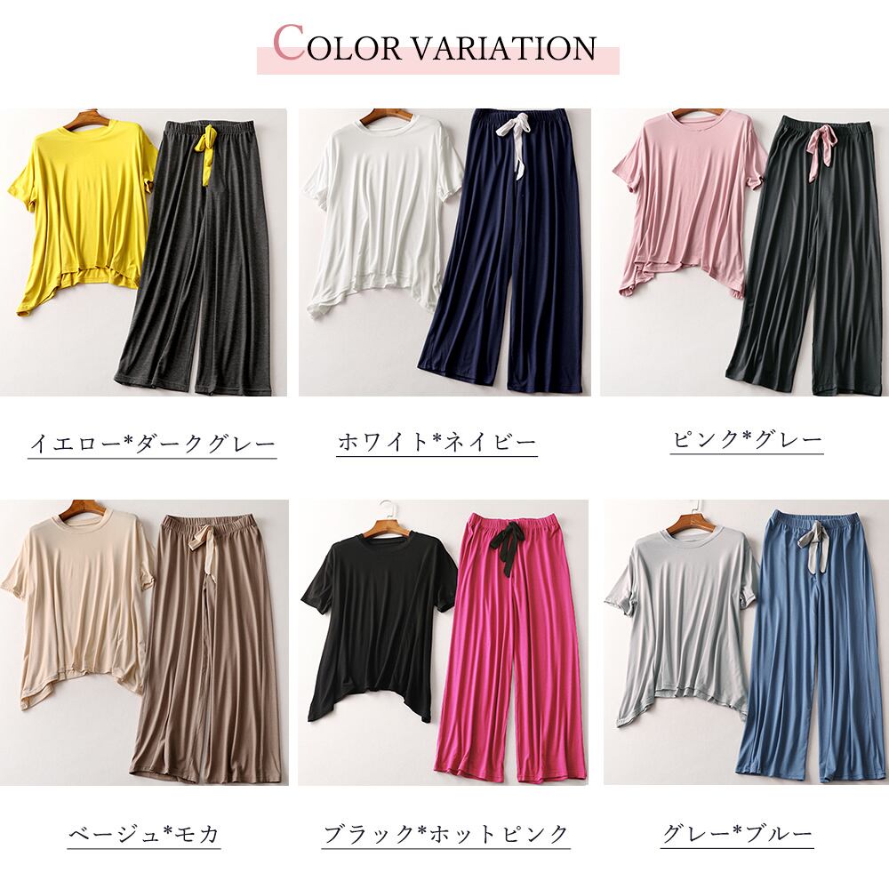 ロングパンツと半袖トップスのルームウェア2点セットです