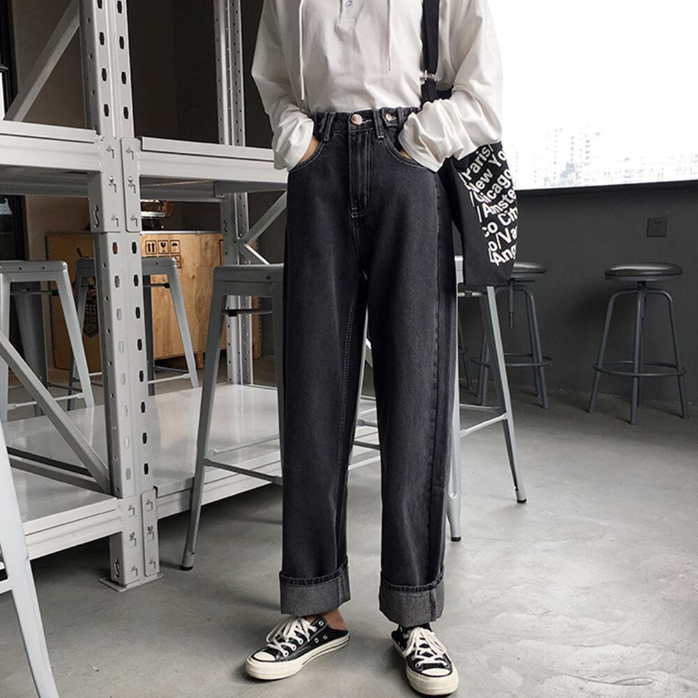 オルチャン長ズボン 裾 ロールアップ 細見えデニムパンツ