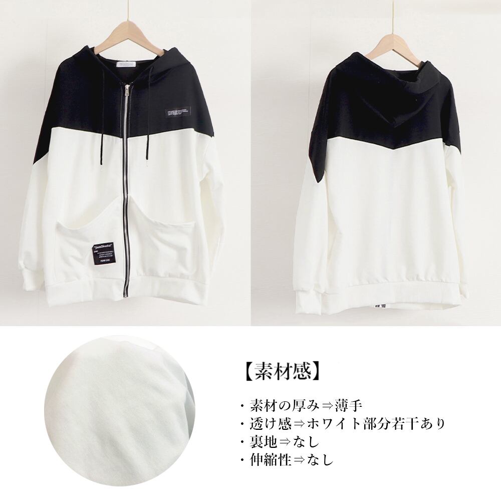フード付きトレーナー長袖 ゆったり 韓国 薄手フーデッド 体型カバートップス おしゃれバイカラーパーカー ストリート春秋