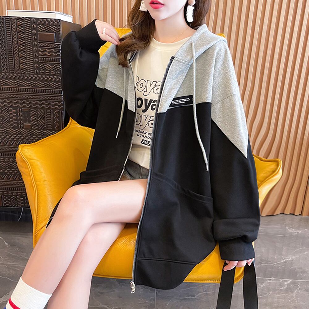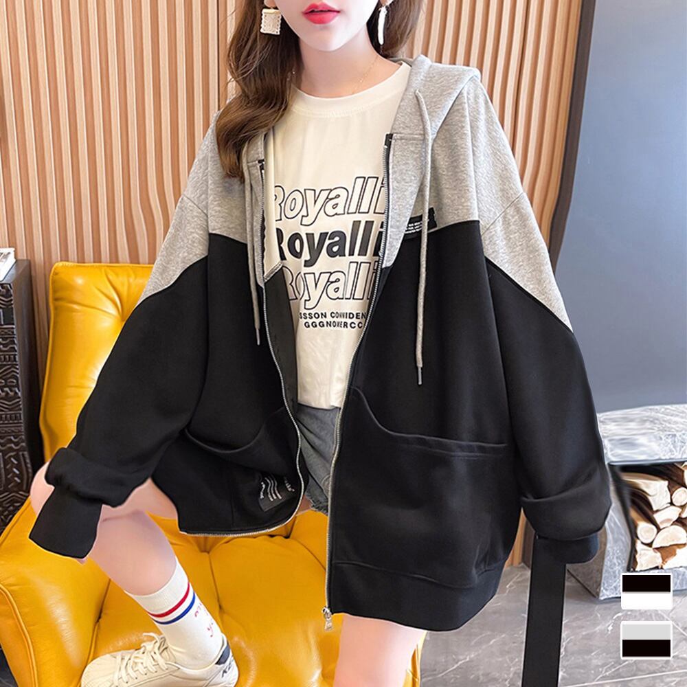 配色ZIPパーカー カーディガン 春服 カジュアル 羽織り