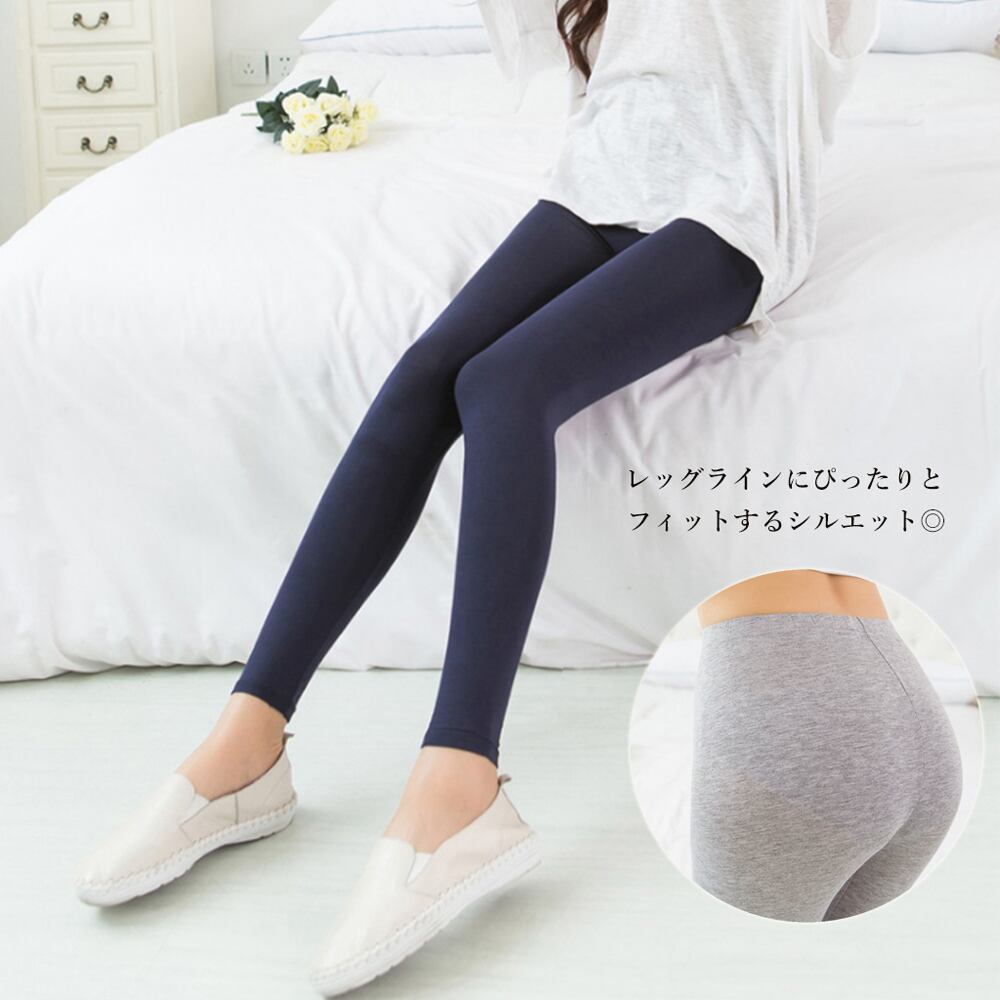 レッグラインにぴったりとフィットするシルエットで、女性らしい美脚を演出無地レギンスパンツ
