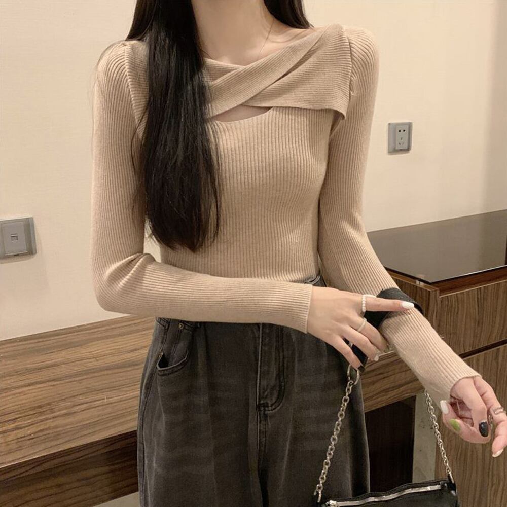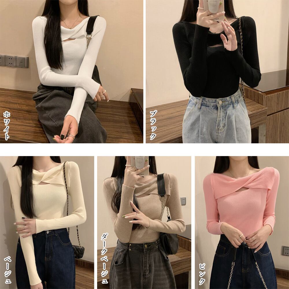 タイトトップス春秋 着回しニット重ね着 女性ニットソー無地