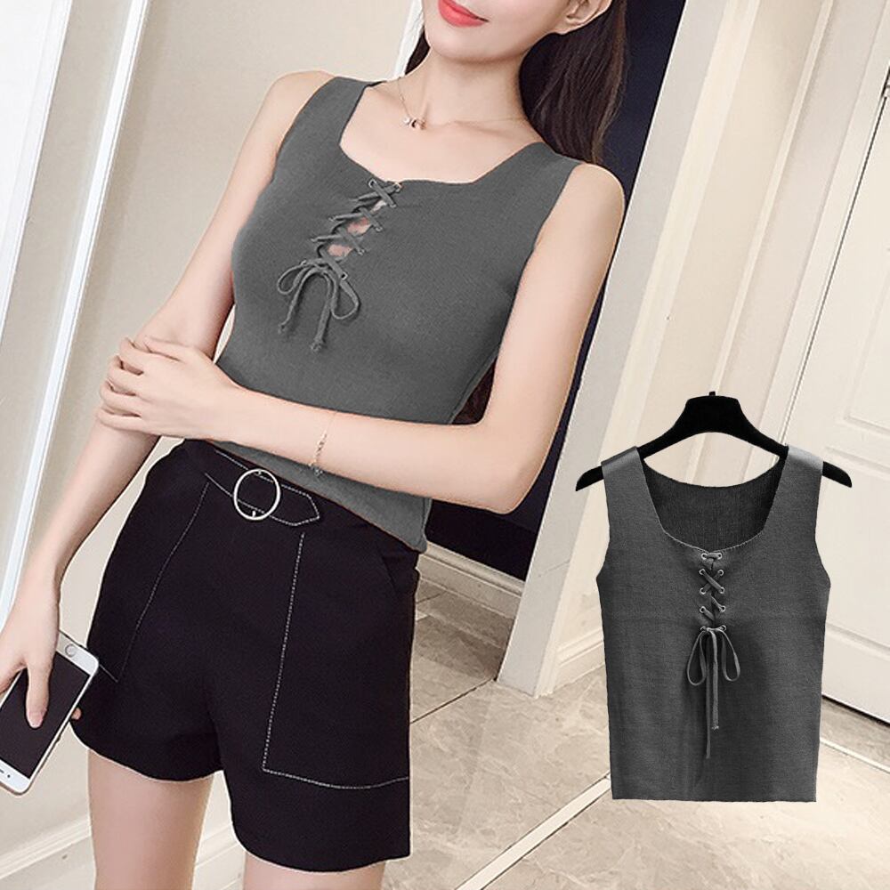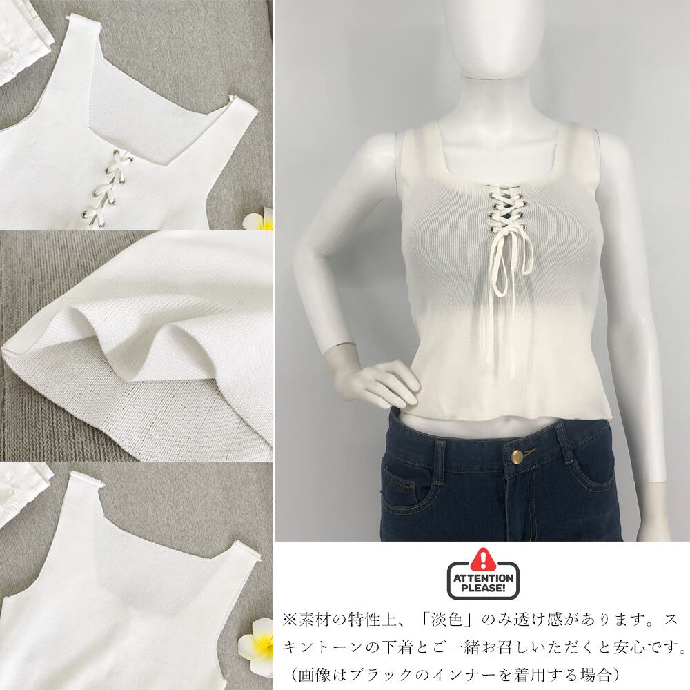 ニットキャミソール レディース タンクトップ レースアップ ノースリーブ