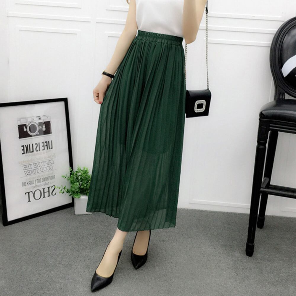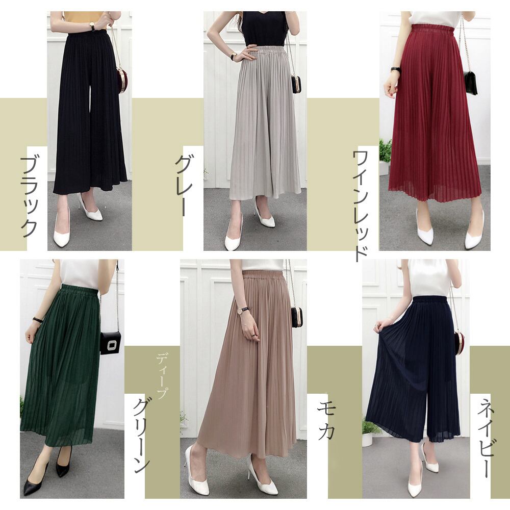 プリーツ ガウチョパンツ レディース シフォン スカンツ ウエストゴム