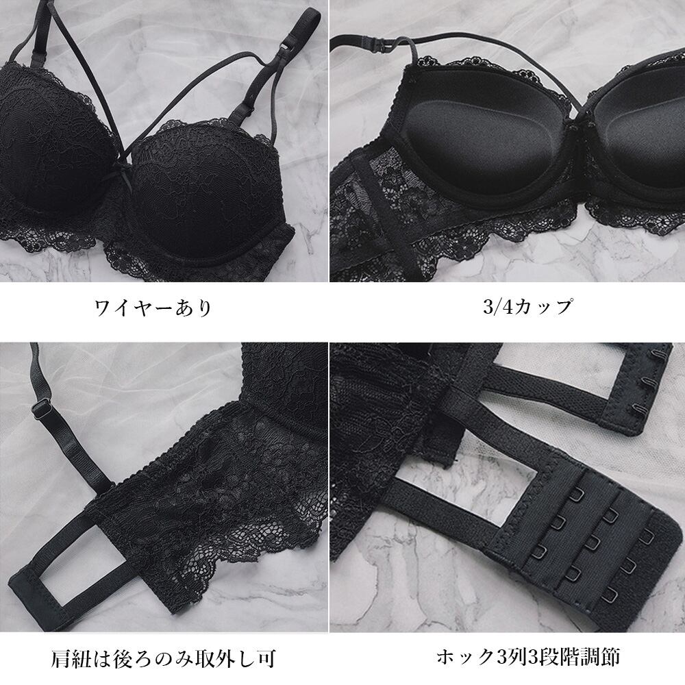 大人可愛い レース フロントクロスブラジャー 透けショーツ 下着セット 美胸 脇高ブラ小胸盛れる 谷間ブラ ワイヤーあり