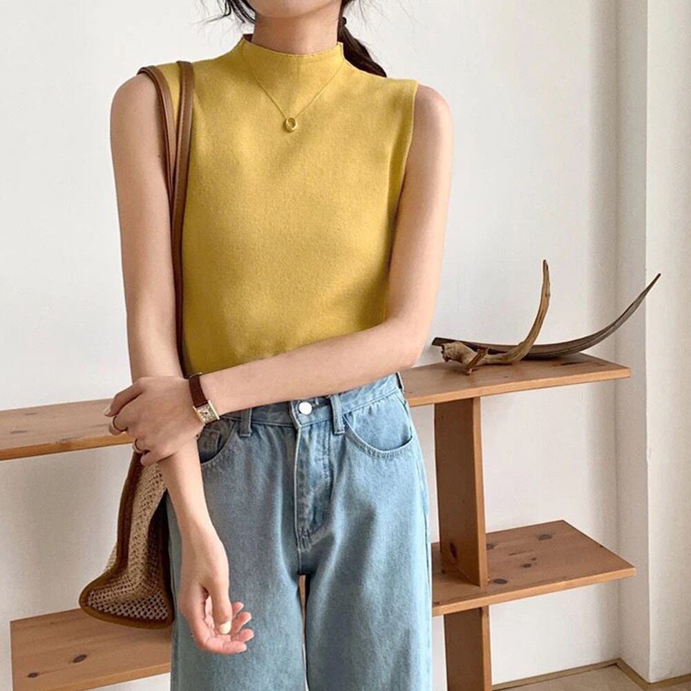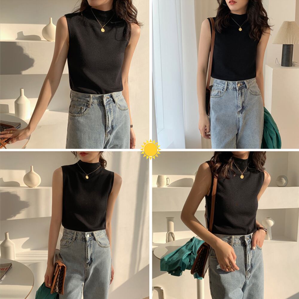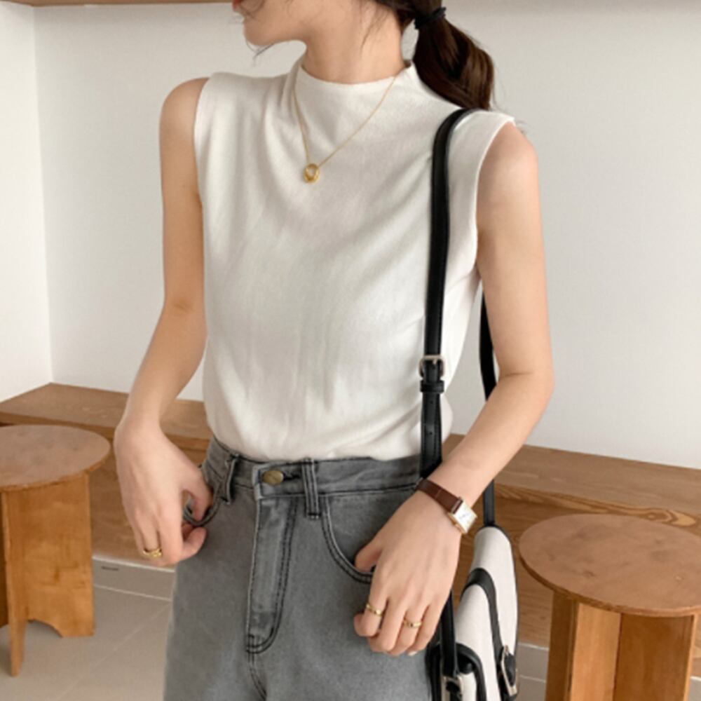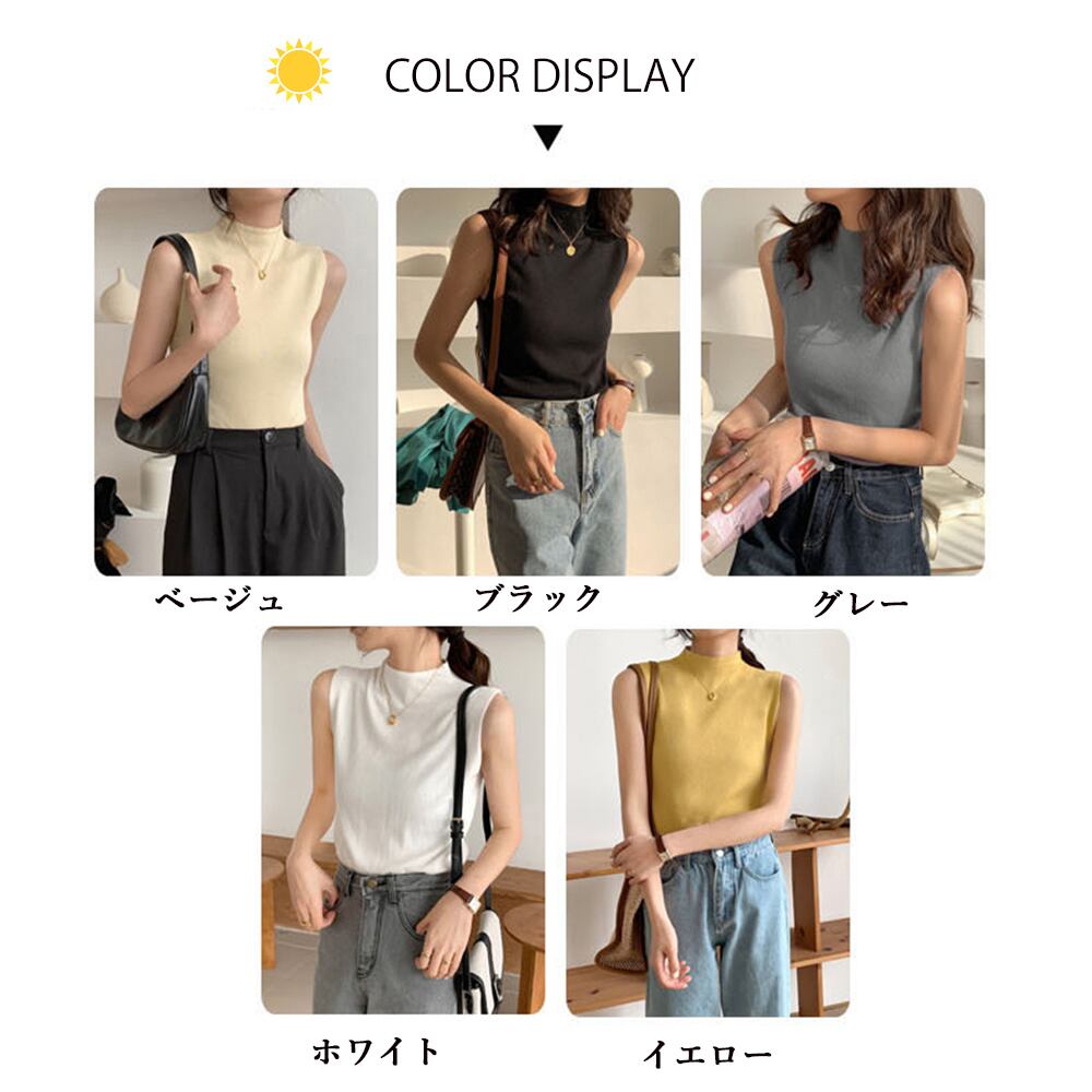 シンプル ノースリーブ ニットトップス 無地 サマーニット 着やせ オシャレ 袖なしニットカットソー 韓国ファッション
