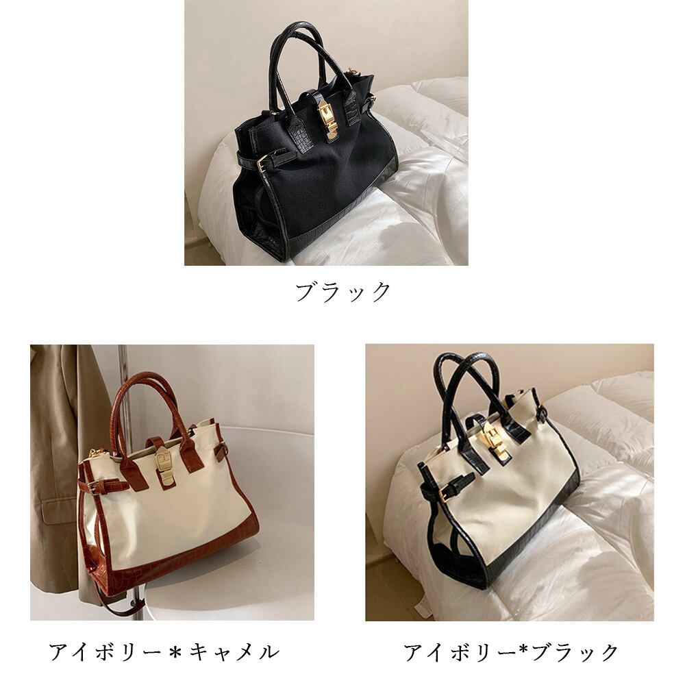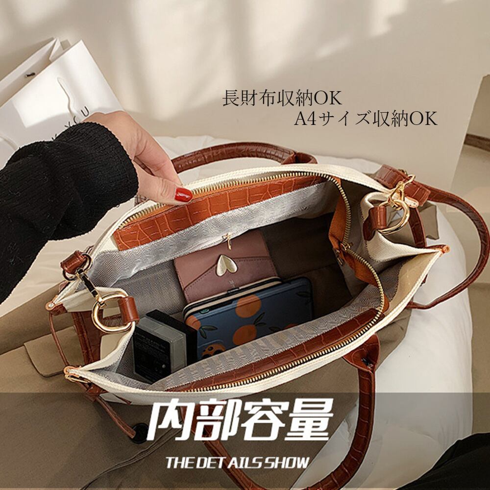 2WAY ショルダーバッグ PU 斜めかけ A4 上品 収納 キャンパス 異素材 手提げ鞄 通勤 高級質感 オシャレ ハンドバッグ