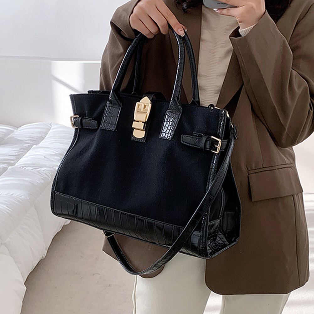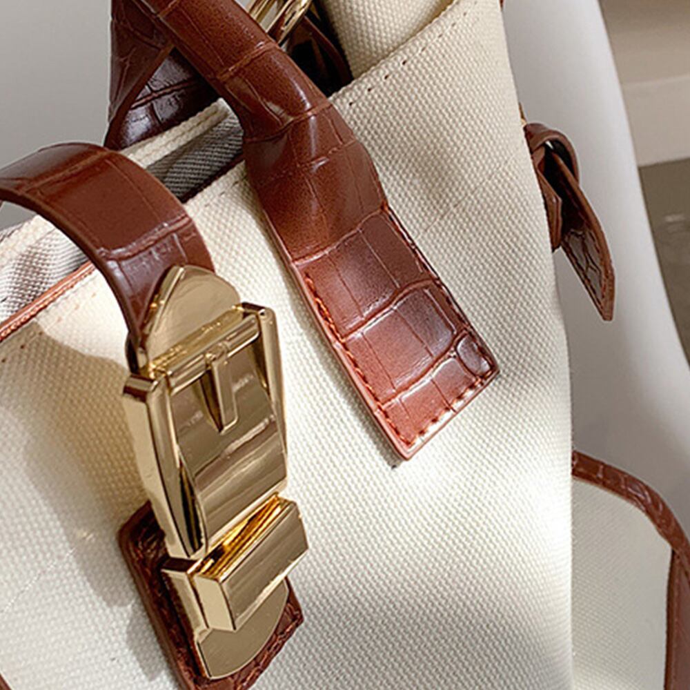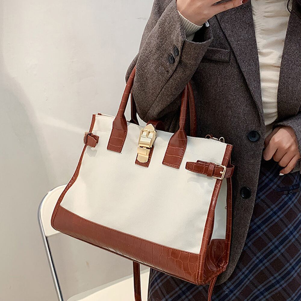 上質なPUレザーとキャンパス素材で仕上げた2WAYショルダートートバッグ