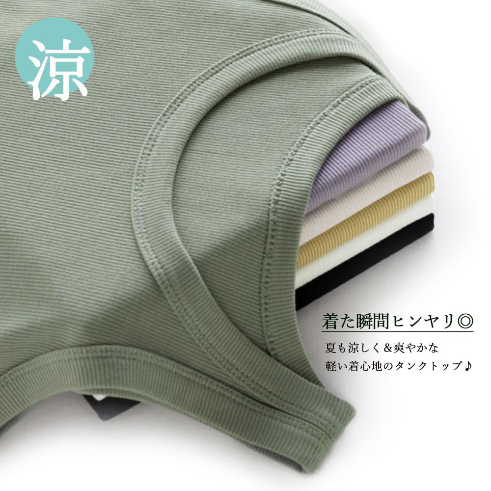 リブ編みキャミソール ストレッチ スリム 冷感タッチ キャミ Uネック ニットトップス韓国風 30代40代 肌着 お洒落