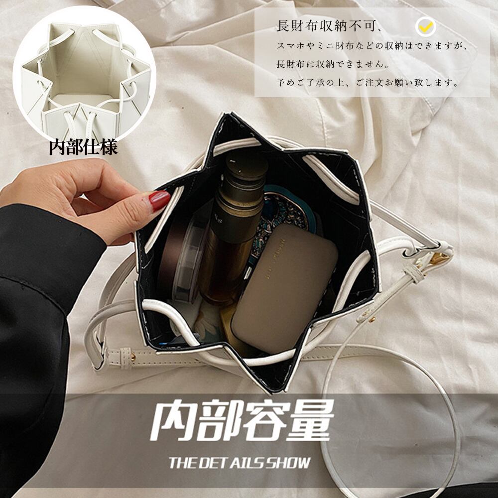 PUレザーバケツバック 六角形鞄2WAY 斜め掛け 肩掛けバッグ お洒落ハンドバッグ きれいめデザインバッグ コンパクト