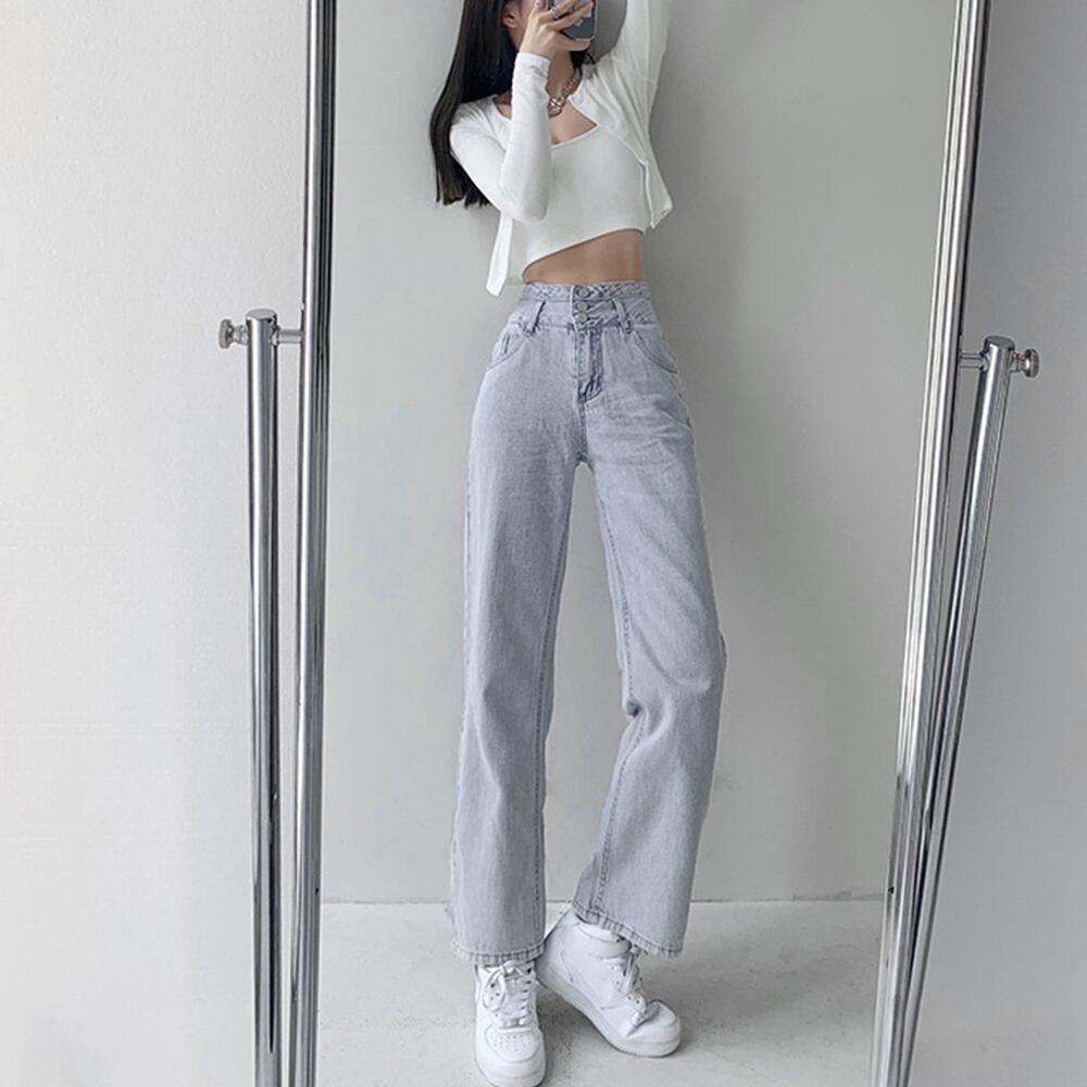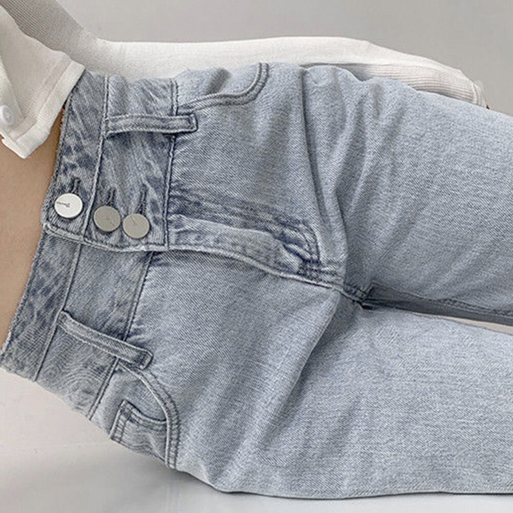 美脚ストレートパンツ 着やせ セミワイドパンツ ボタン付き ジーパン 高く見え ロングズボン オシャレ カジュアルパンツ