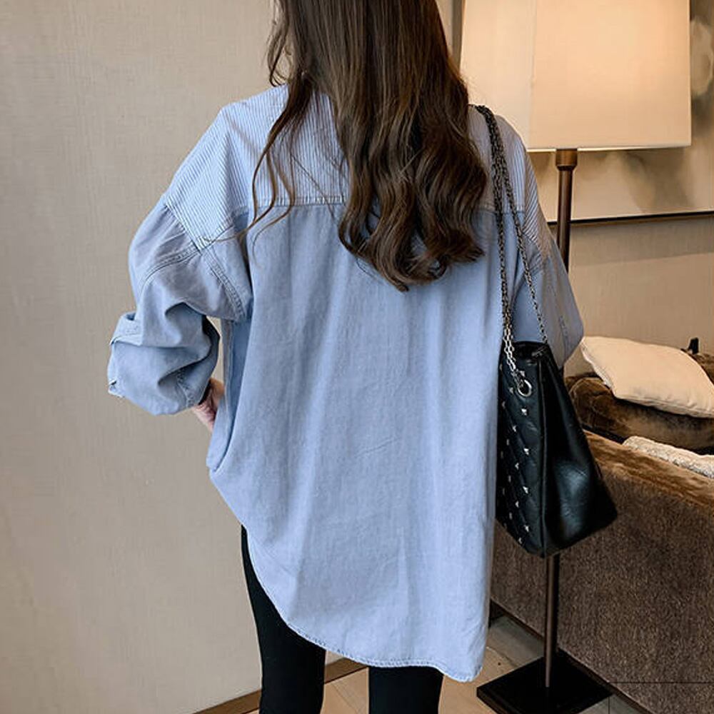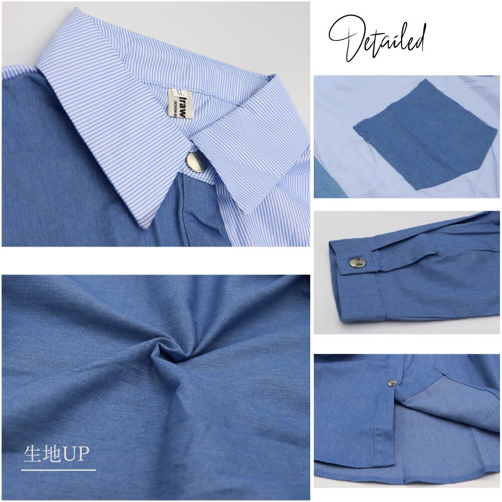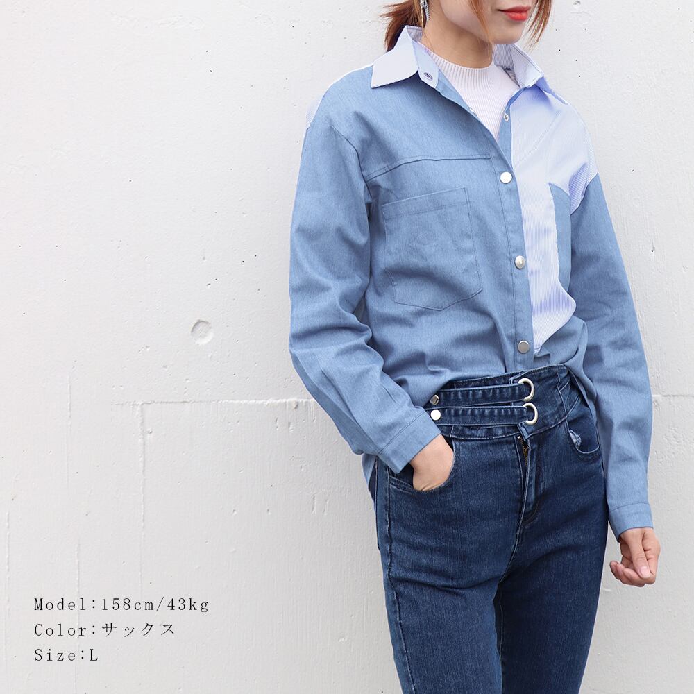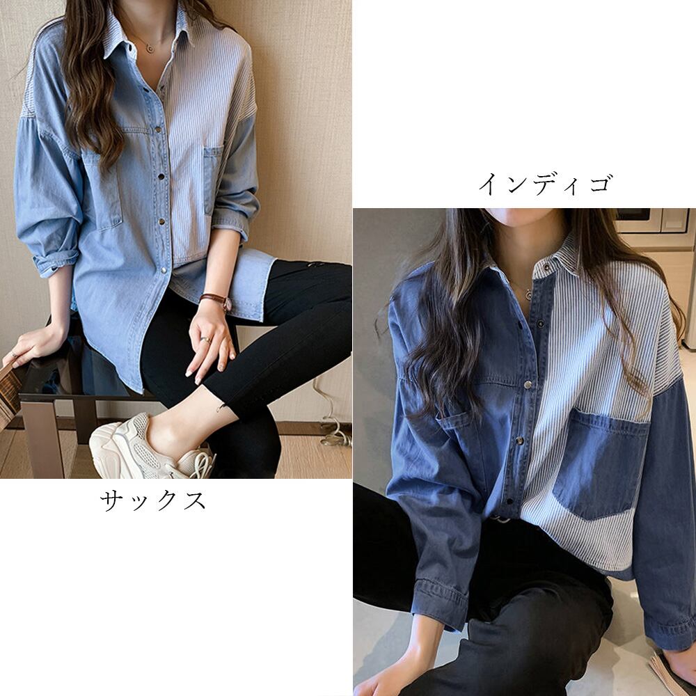 デニム風シャツブラウス レディース 長袖シャツ 春服 切り替え トップス