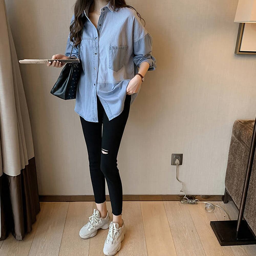 合わせやすく着回しやすい便利な長袖デニム風ブラウス