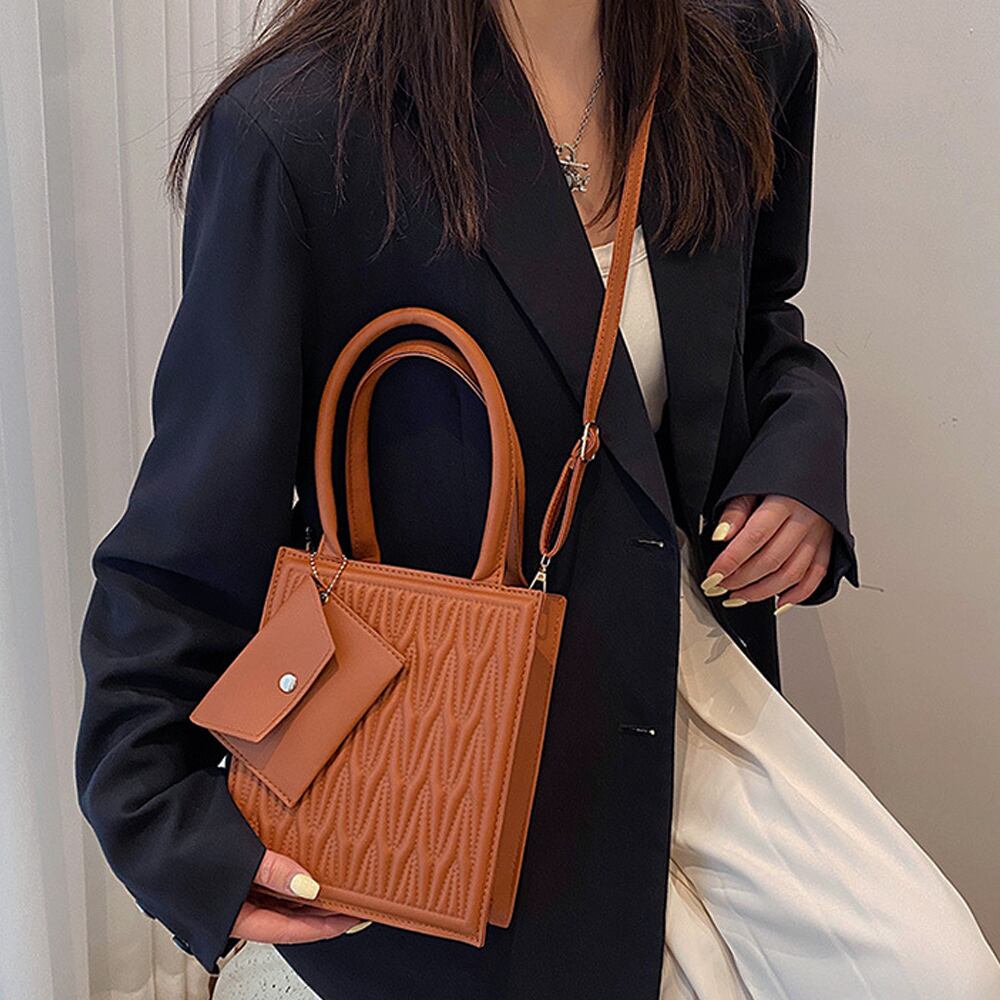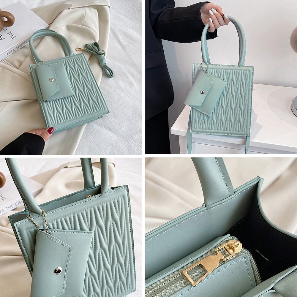 スクエアバッグ おしゃれ ミニトートバッグ 縦型 ファスナー付き オルチャン肩掛けバッグ お出かけ斜めがけ ハンドバッグ