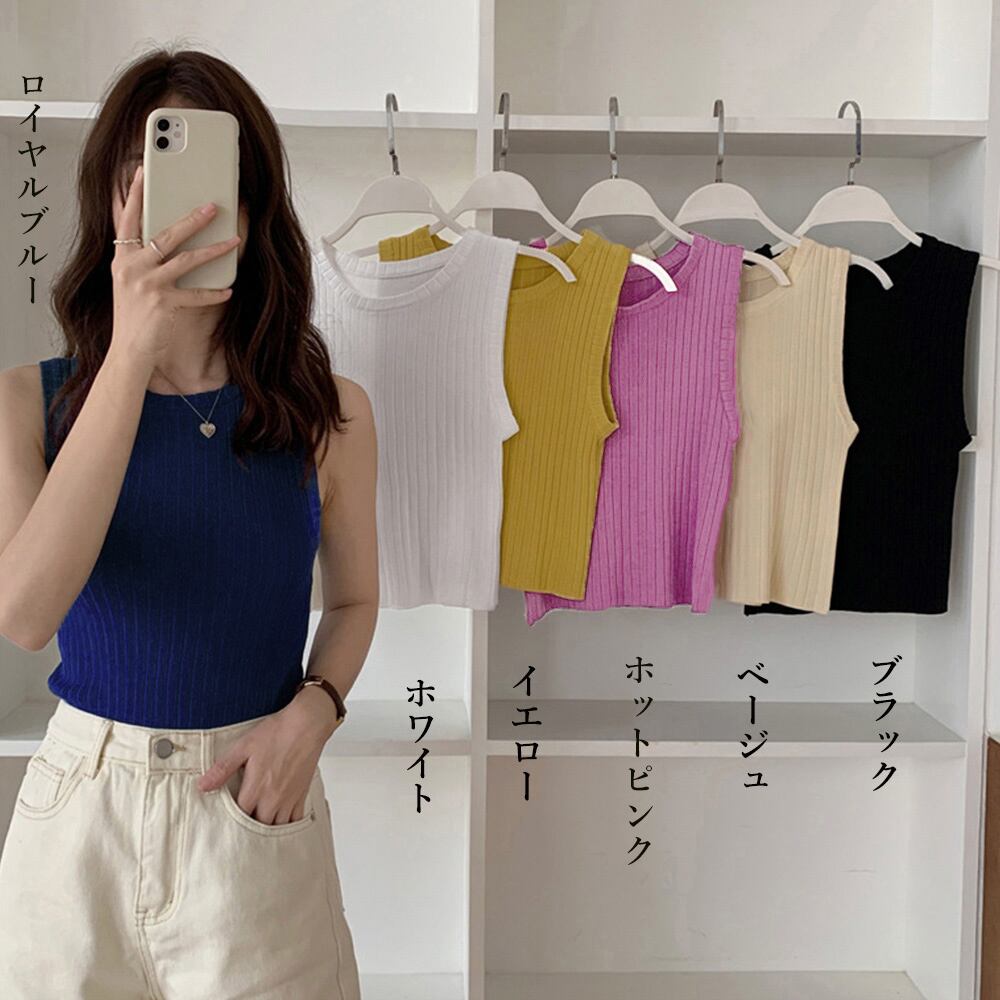 ラウンドネック サマーニット 着回し 大人カジュアル 韓国 ノースリーブ ニットカットソー 無地お洒落 ニットインナー