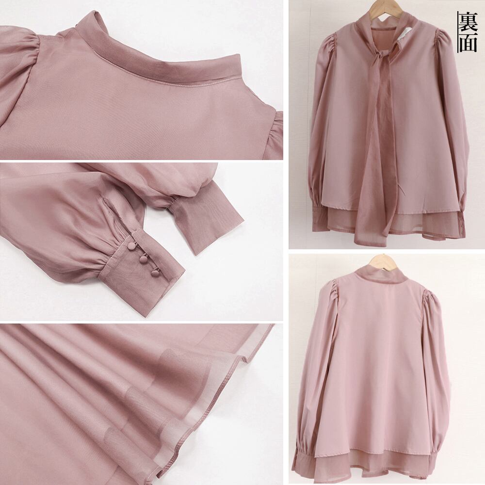 バックリボンシフォンブラウス レディース