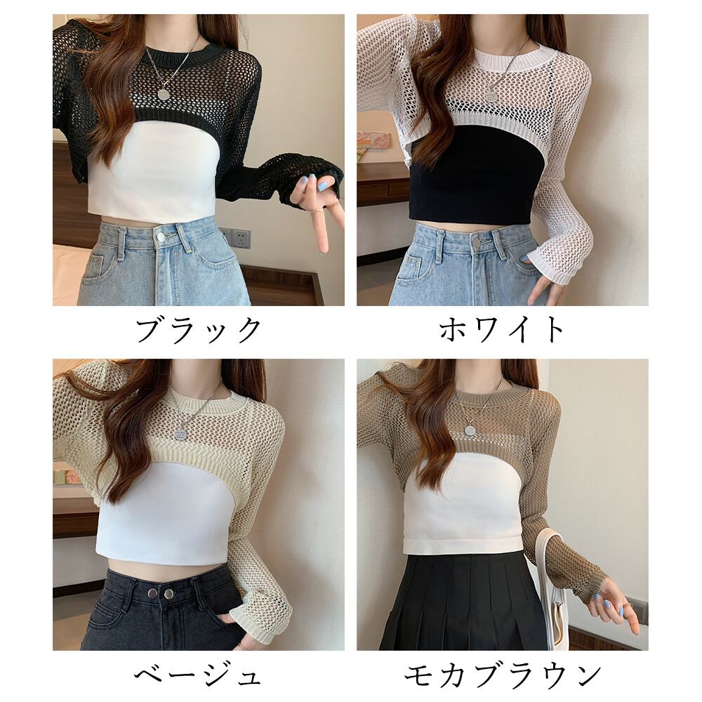 透かし編みトップス 長袖ニットセーター 韓国ファッション
