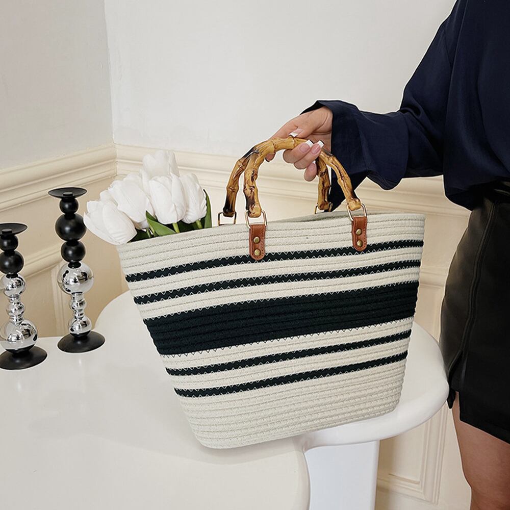 かごバッグ 大容量トートバッグ配色カバン
