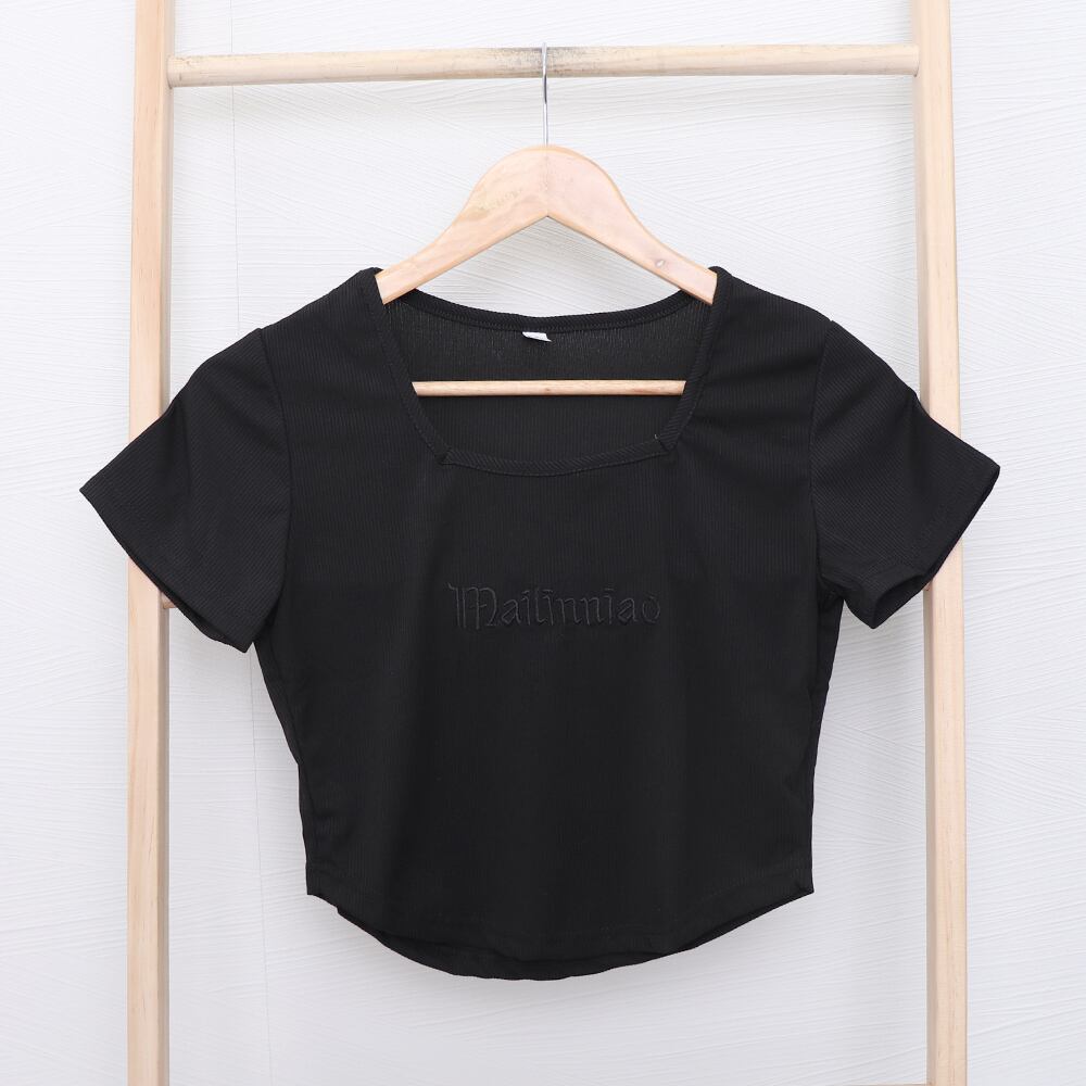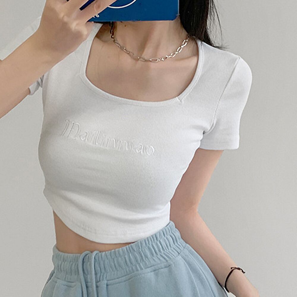 ショートトップス Uネック Tシャツ 韓国ファッション