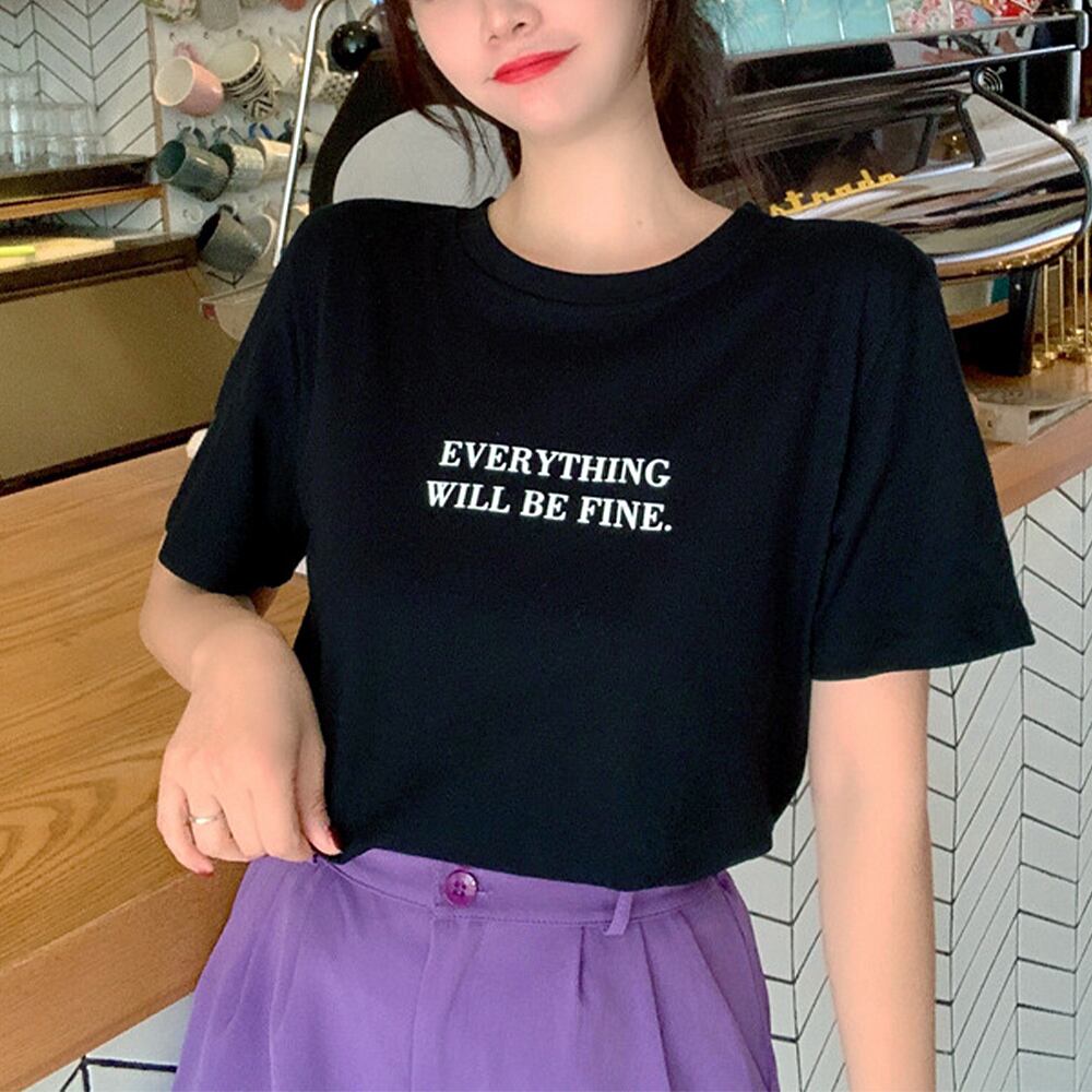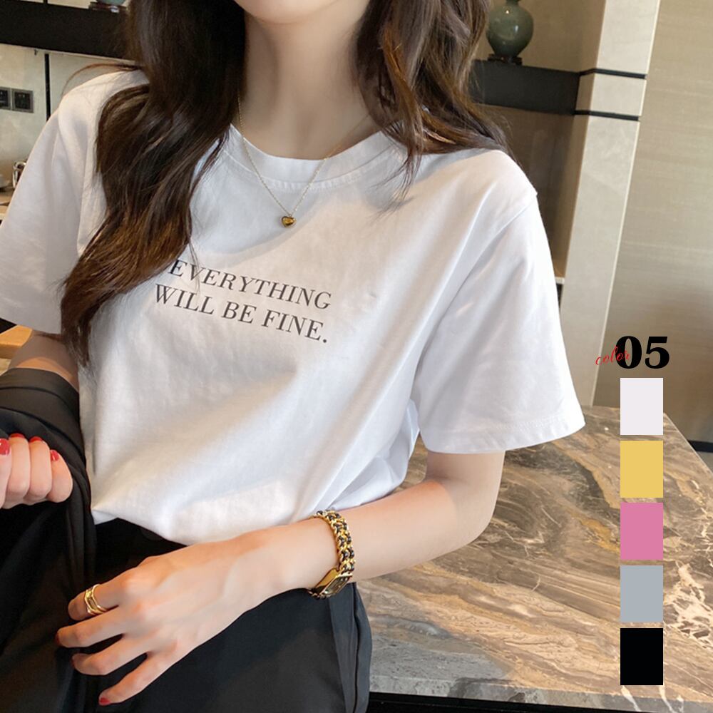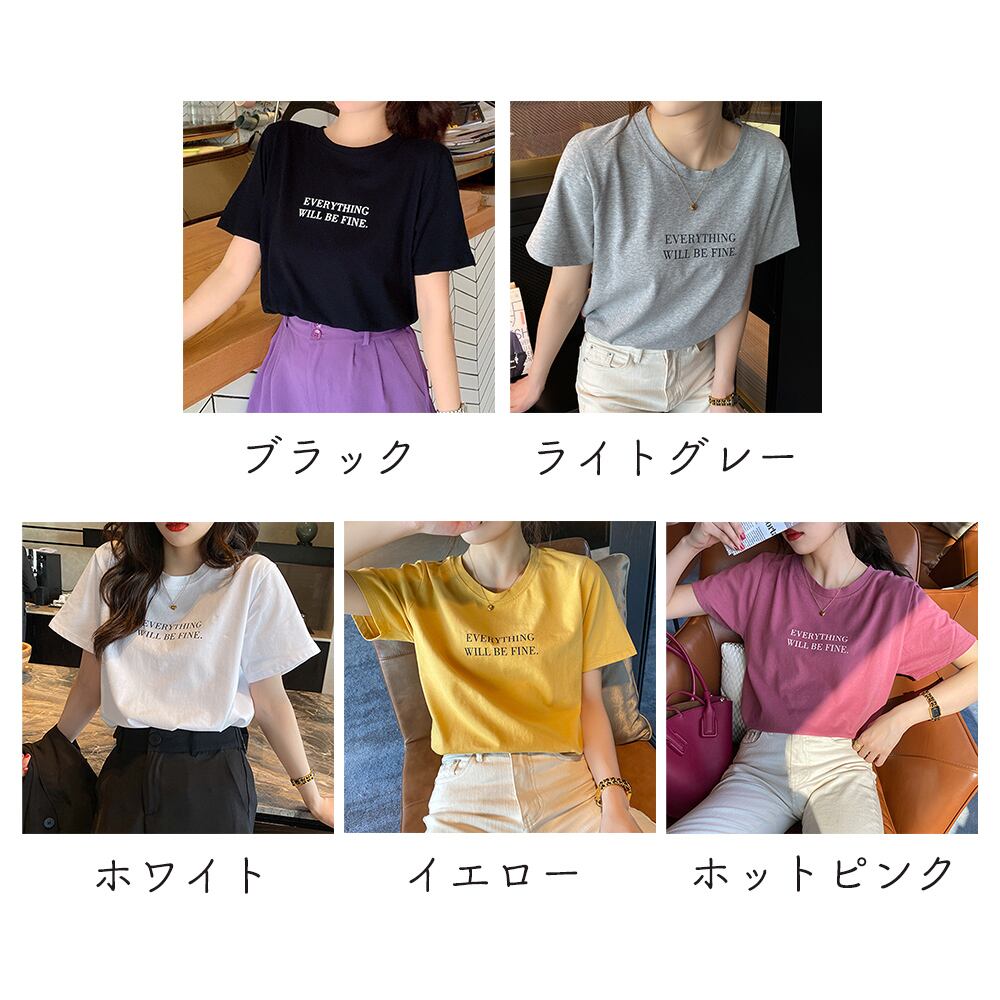 ロゴTシャツ カットソー クルーネック ゆったり カジュアル 着やせ シンプル オルチャン 全5色 オシャレ